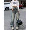 Pantalones vaqueros de cintura baja de nuevo diseño de otoño para mujer, pantalones acampanados deshilachados, pantalones holgados de pierna ancha, pantalones adelgazantes de moda