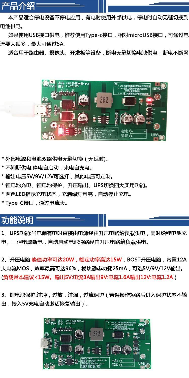 15W 3A alta potencia UPS18650 batería de litio carga elevadora 5v 9v12V mientras carga UPS ininterrumpido