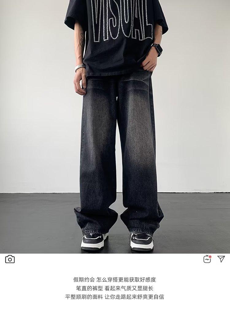 Pantalones vaqueros viejos lavados estilo vintage americano, holgados, de verano, a la moda, rectos, casuales, de pierna ancha
