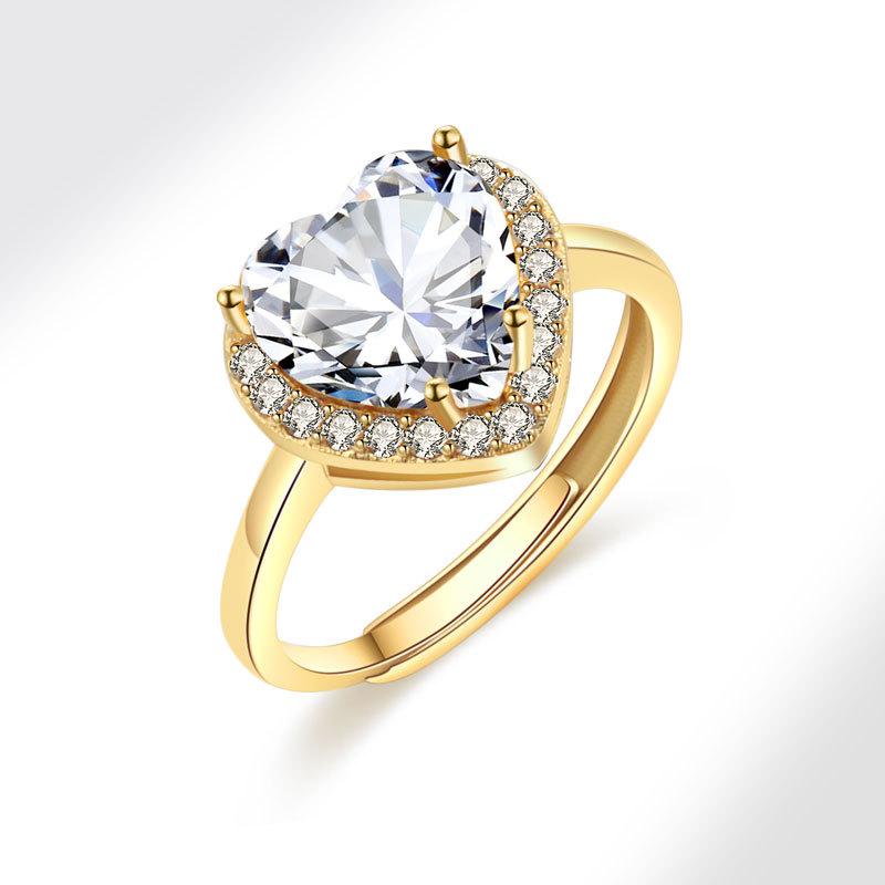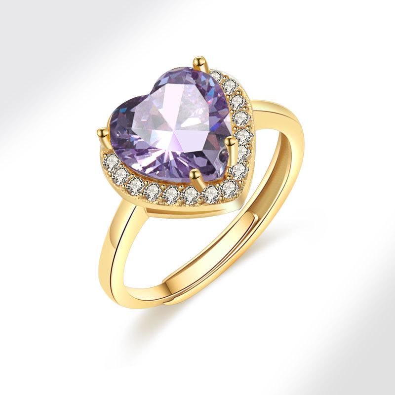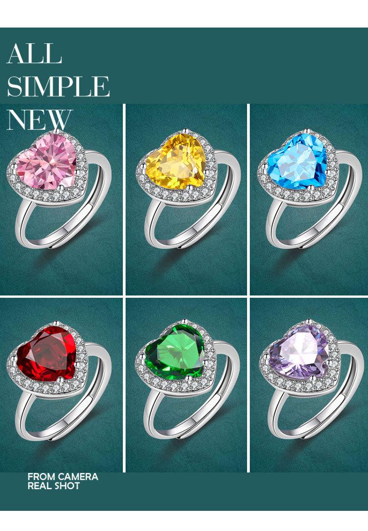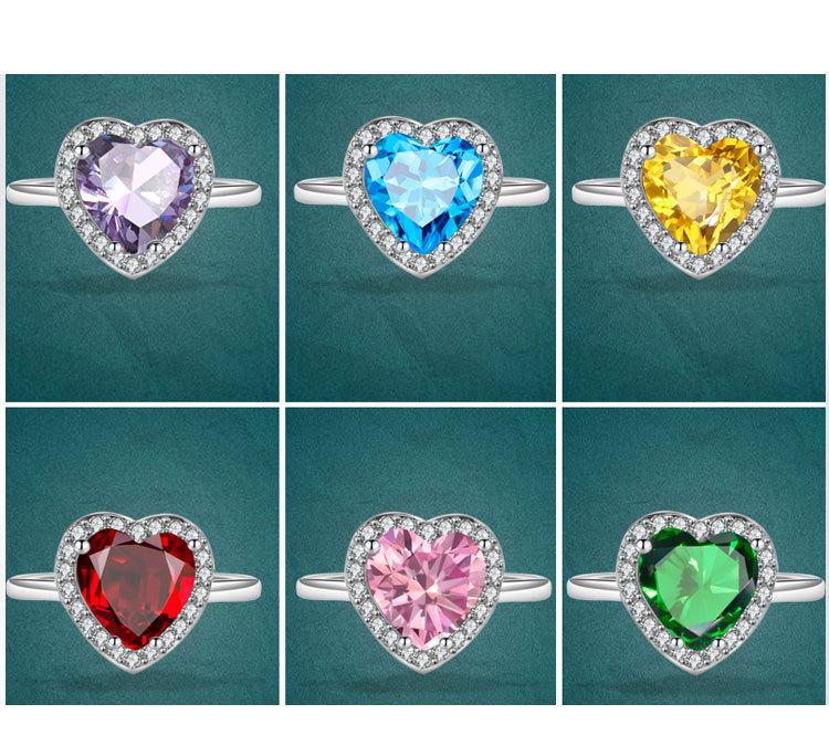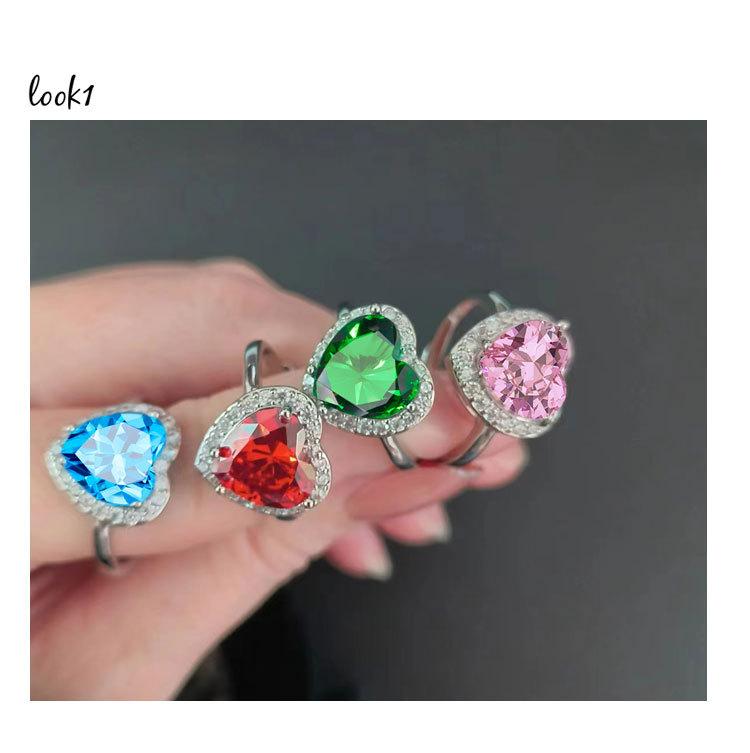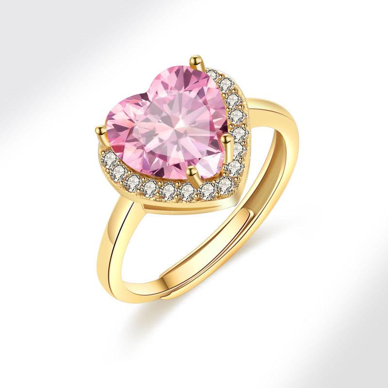 Joyería de tesoro colorida transfronteriza anillo abierto de amor rosa anillo de circonita completa en forma de corazón anillo de dedo para dieta abierto ajustable