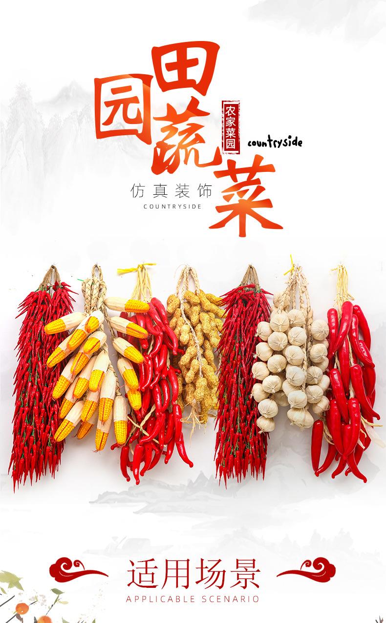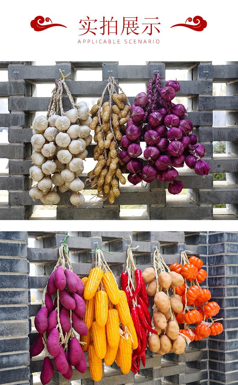 Simulación de verduras y frutas, pimiento rojo Nongjiale, maíz falso, ajo, maní, restaurante, patio, modelo, decoraciones, cuerda colgante