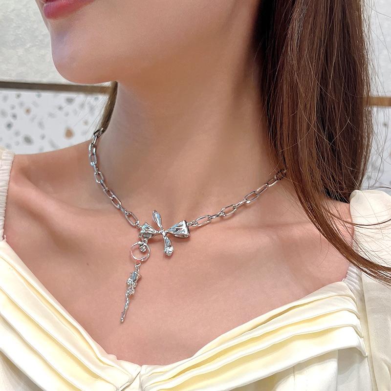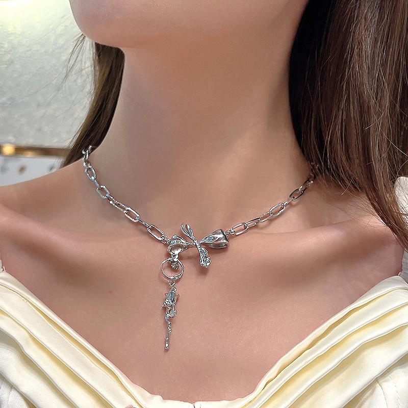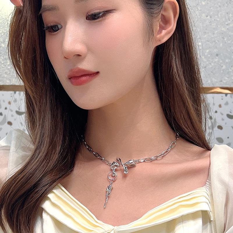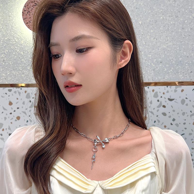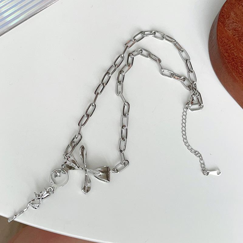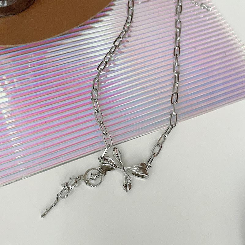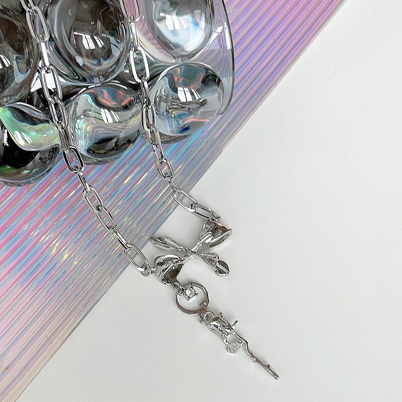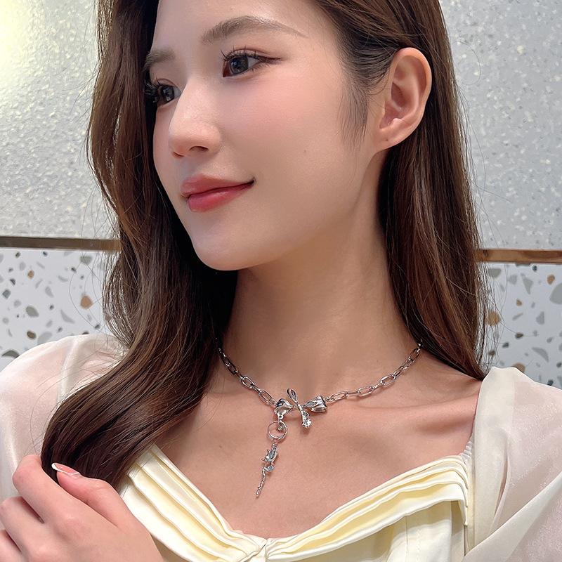 Nuevo Estilo Simple Collar de Lazo Combinable para Mujer Diseño Nicho de Lujo Ligero Elegante Collar de Rosa 438