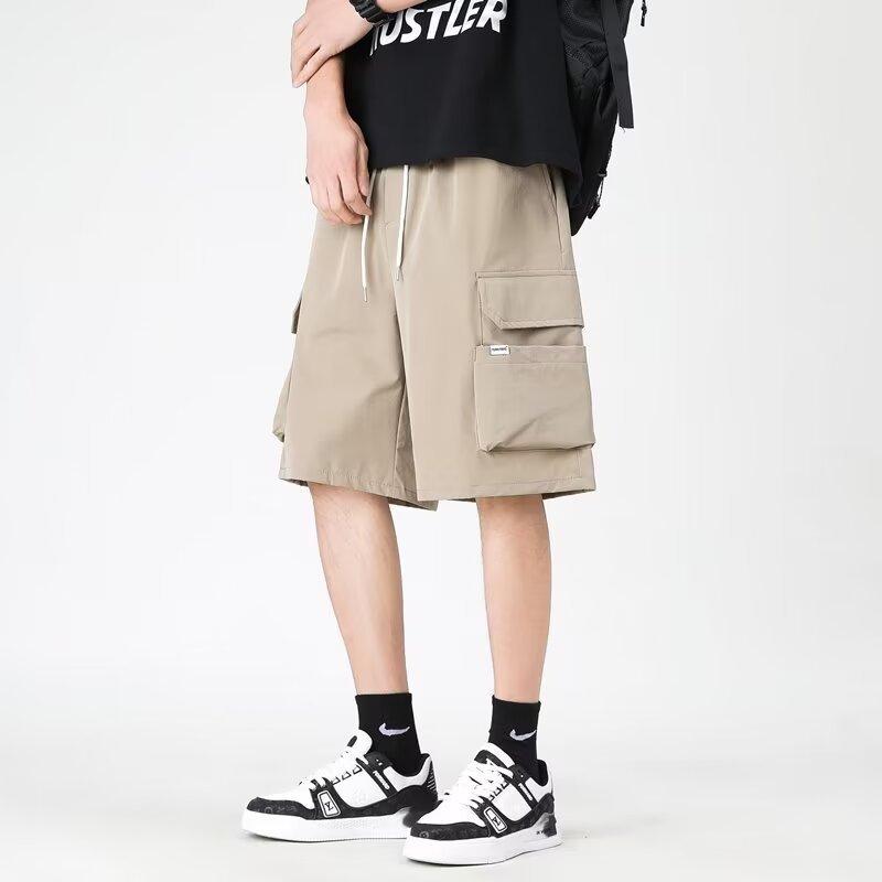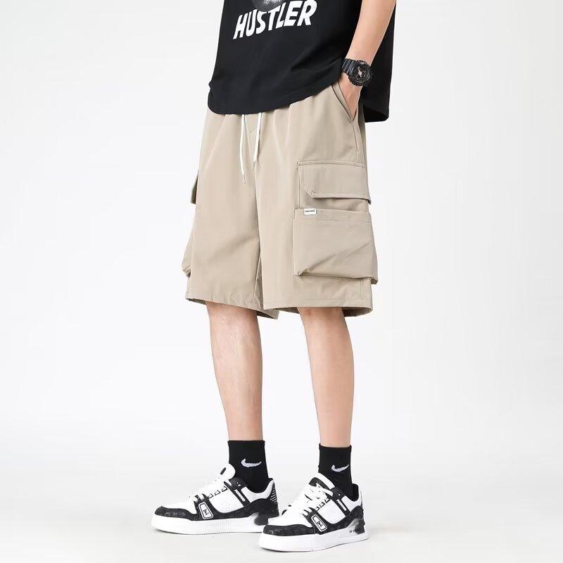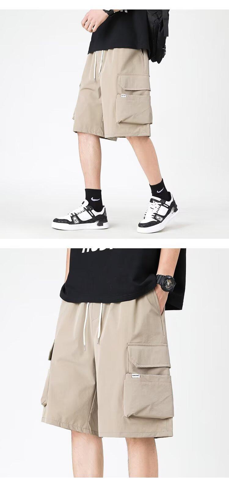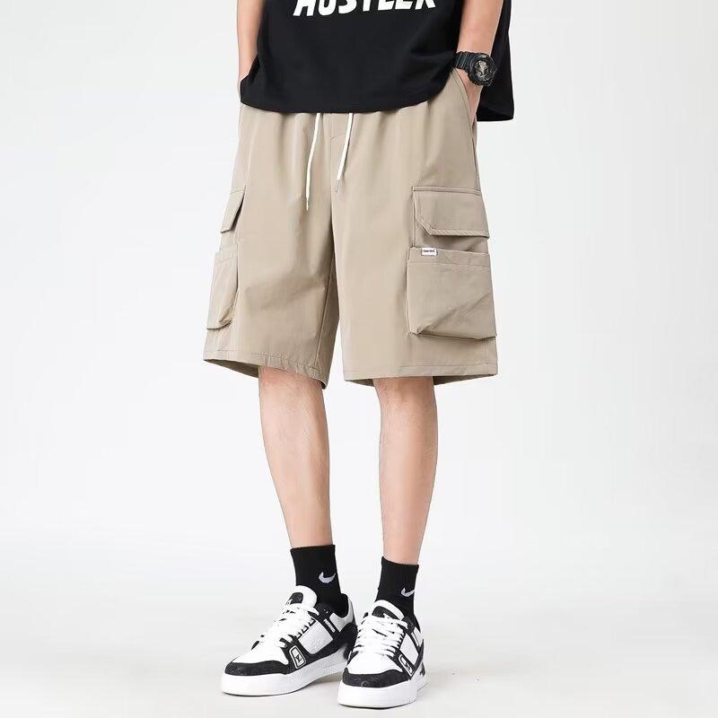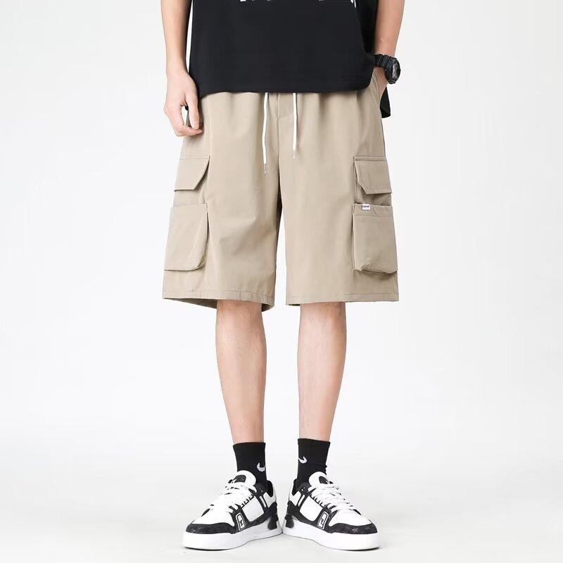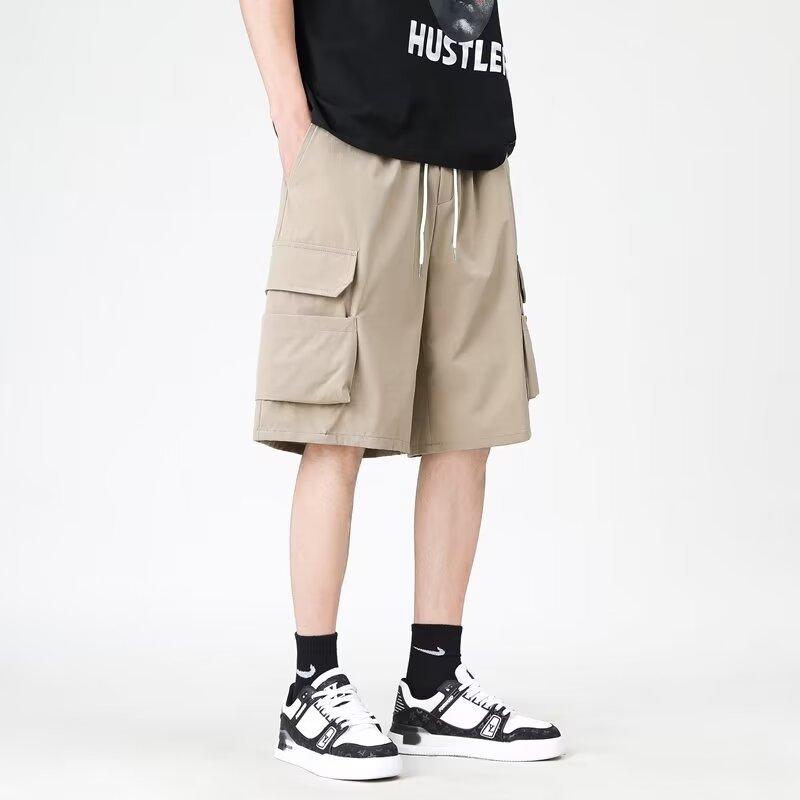Pantalones cortos estilo americano retro con múltiples bolsillos para hombre, de verano, de marca popular, holgados, casuales, de pierna ancha