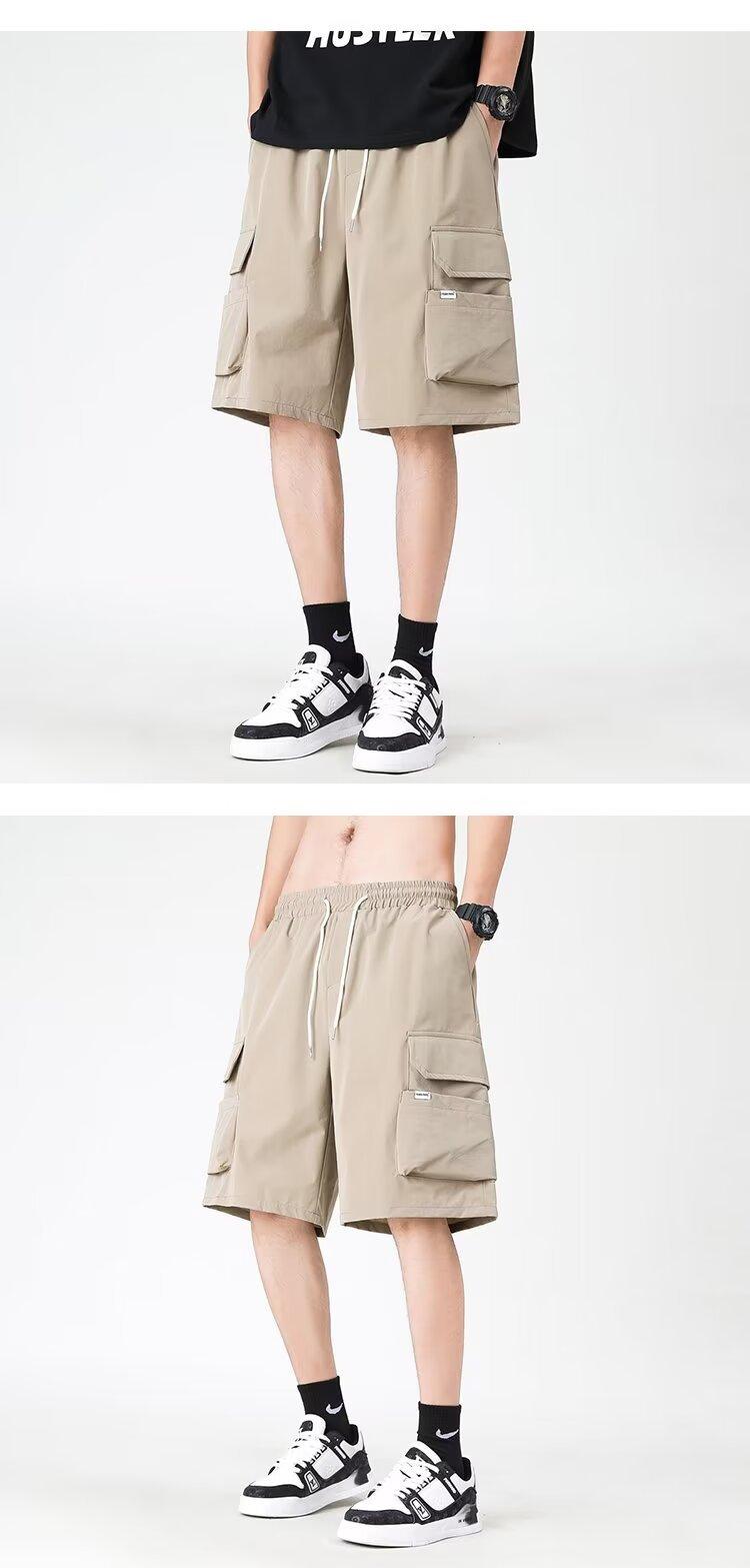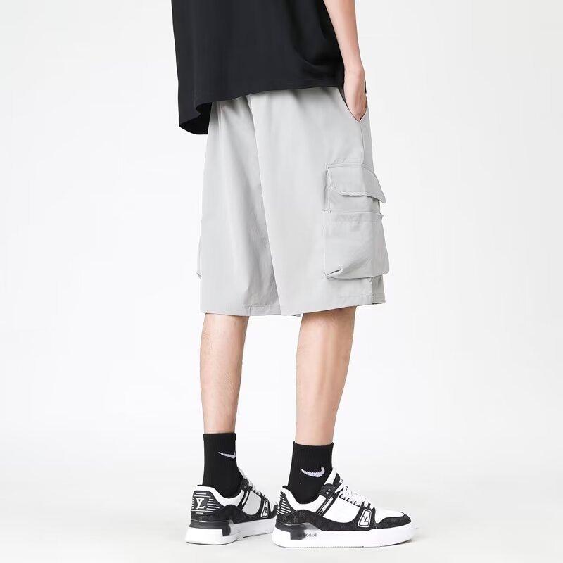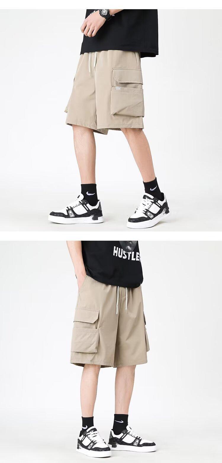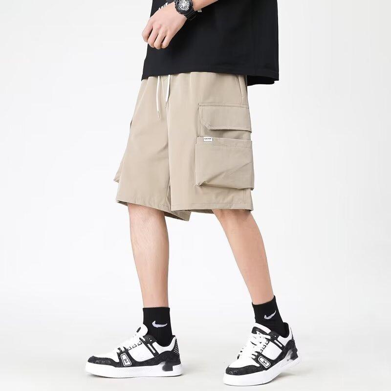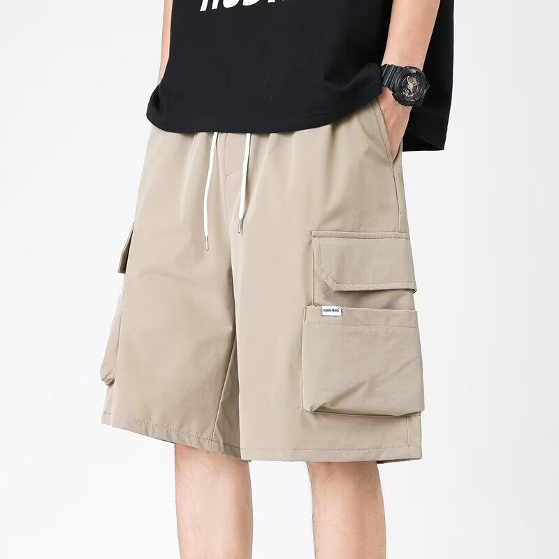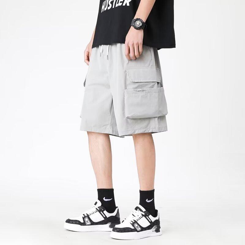 Pantalones cortos estilo americano retro con múltiples bolsillos para hombre, de verano, de marca popular, holgados, casuales, de pierna ancha