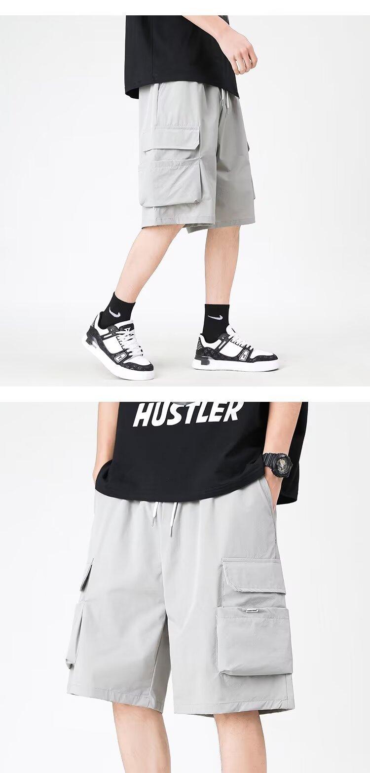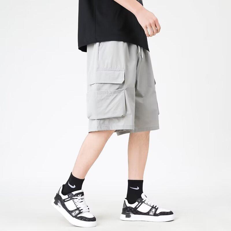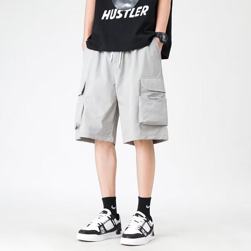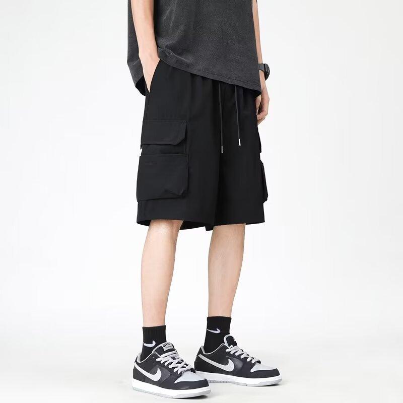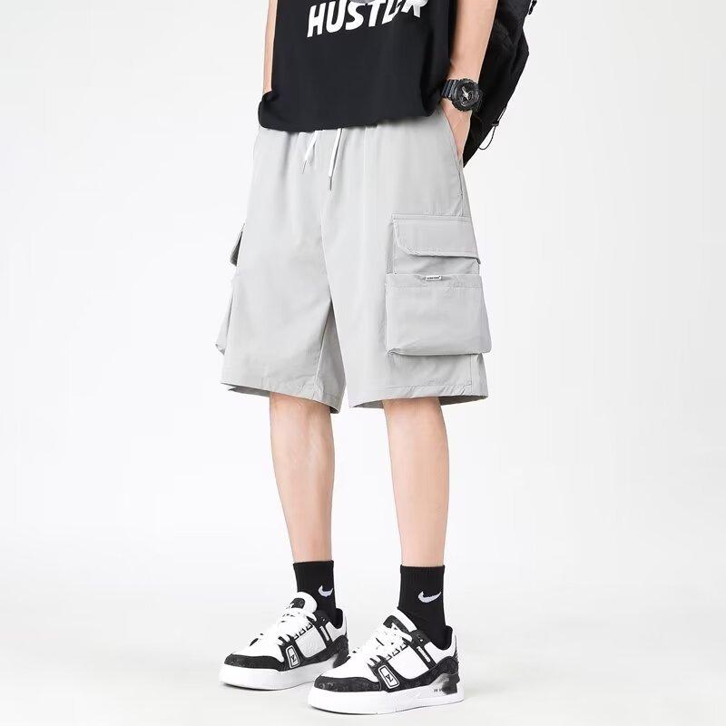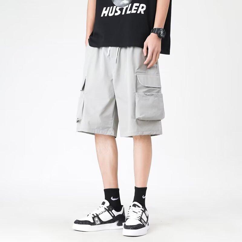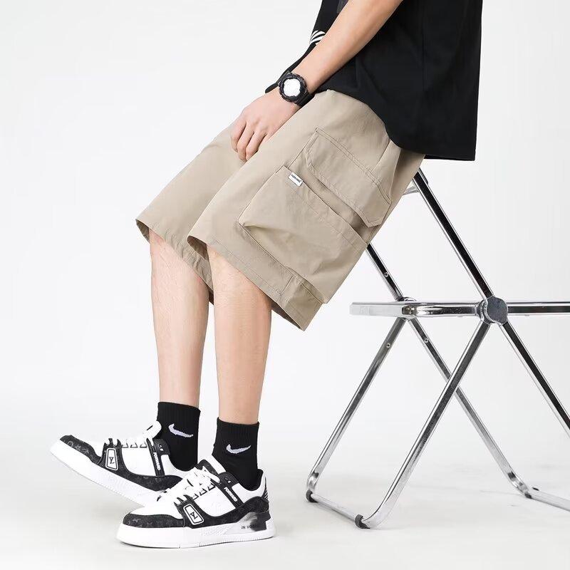 Pantalones cortos estilo americano retro con múltiples bolsillos para hombre, de verano, de marca popular, holgados, casuales, de pierna ancha