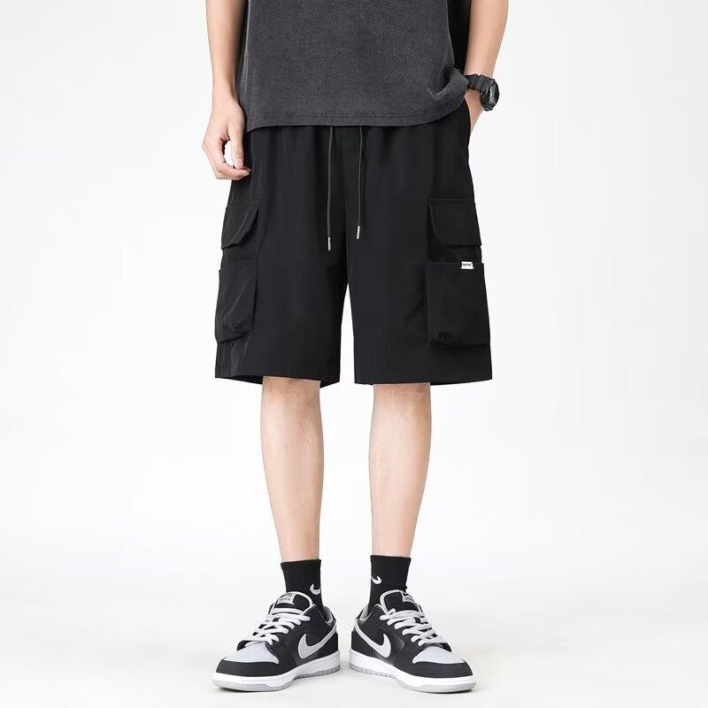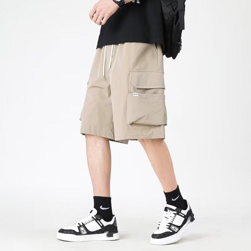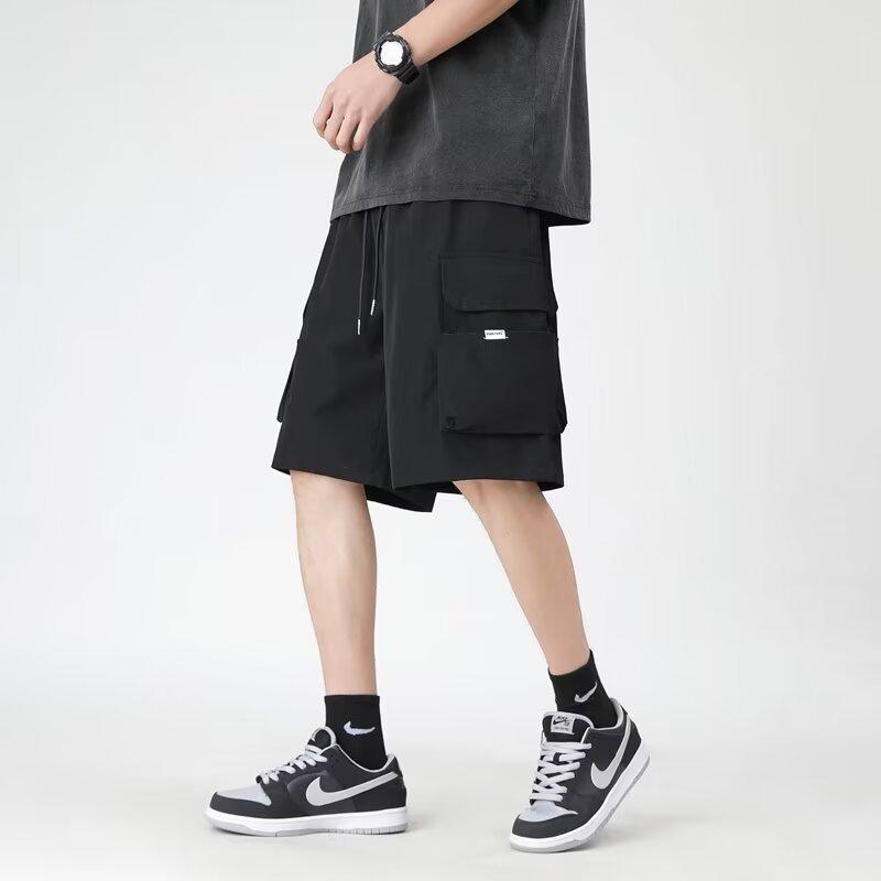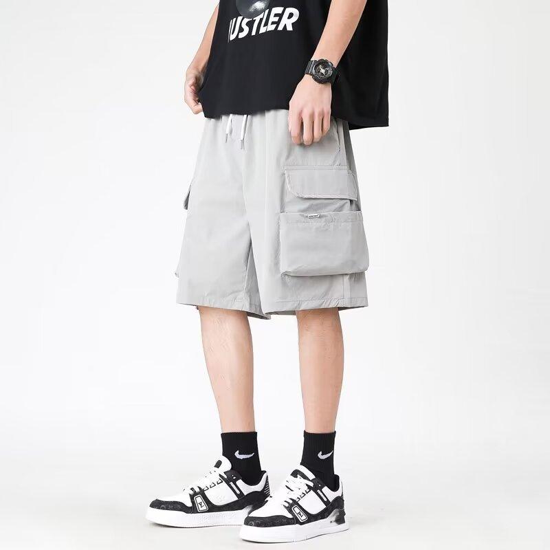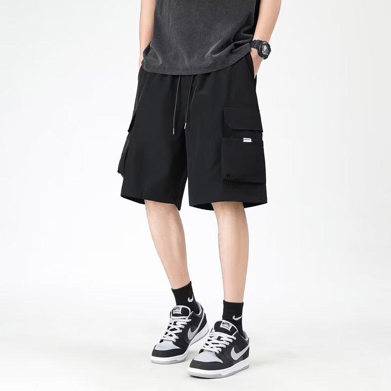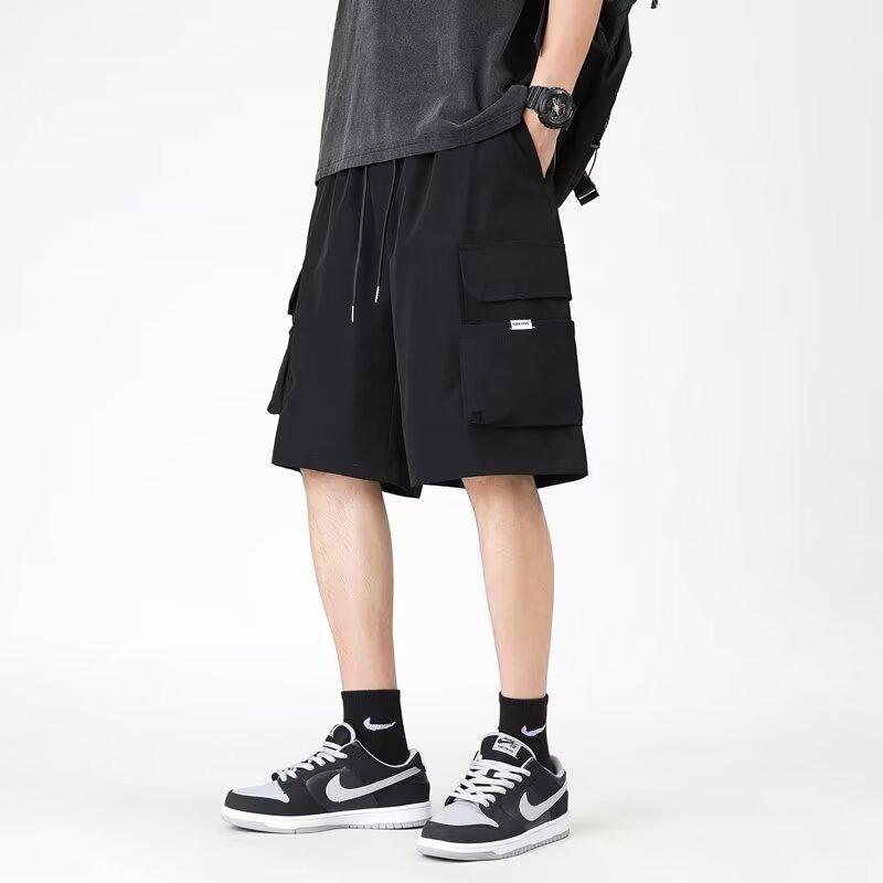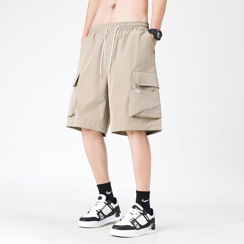 Pantalones cortos estilo americano retro con múltiples bolsillos para hombre, de verano, de marca popular, holgados, casuales, de pierna ancha