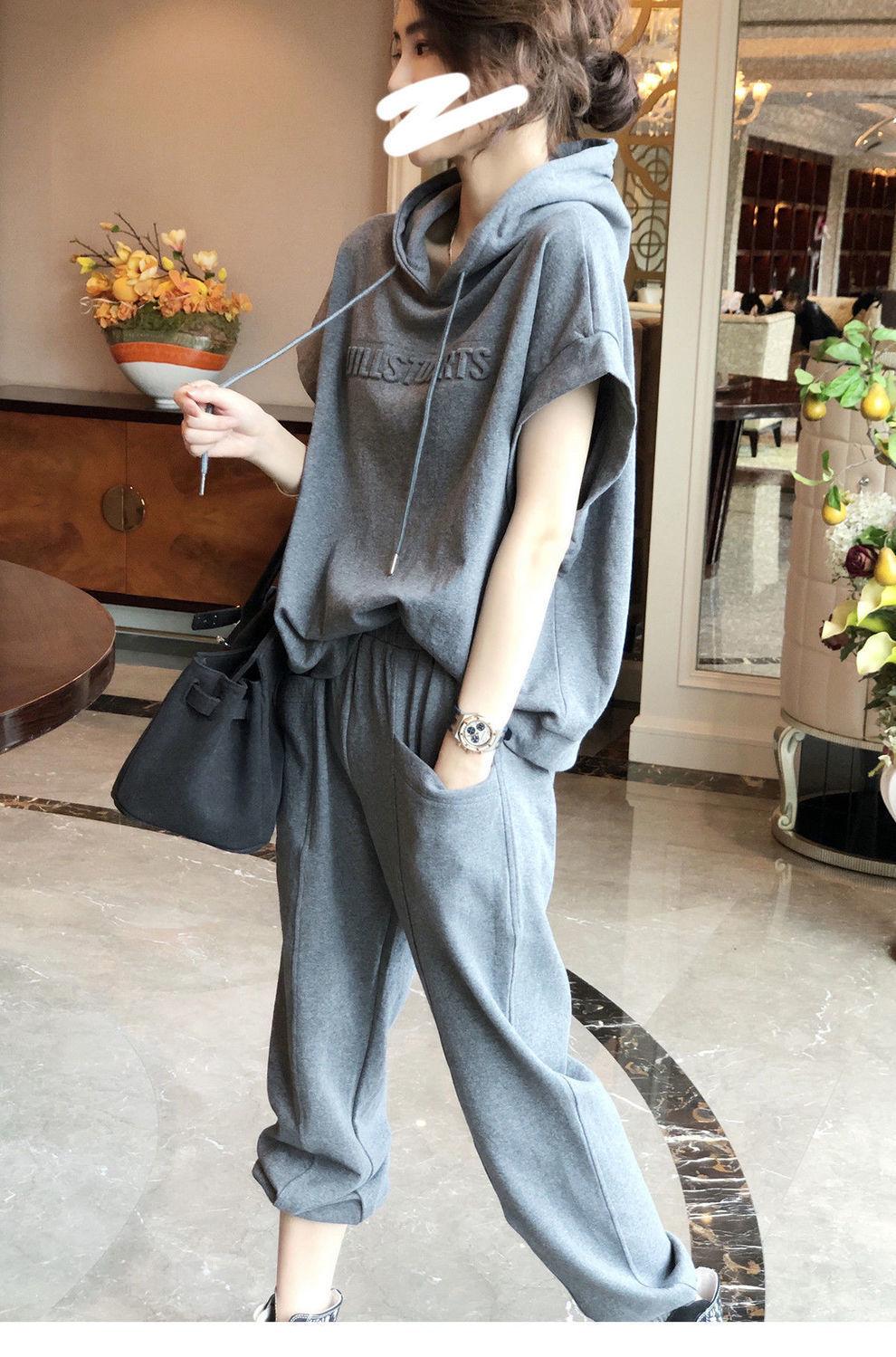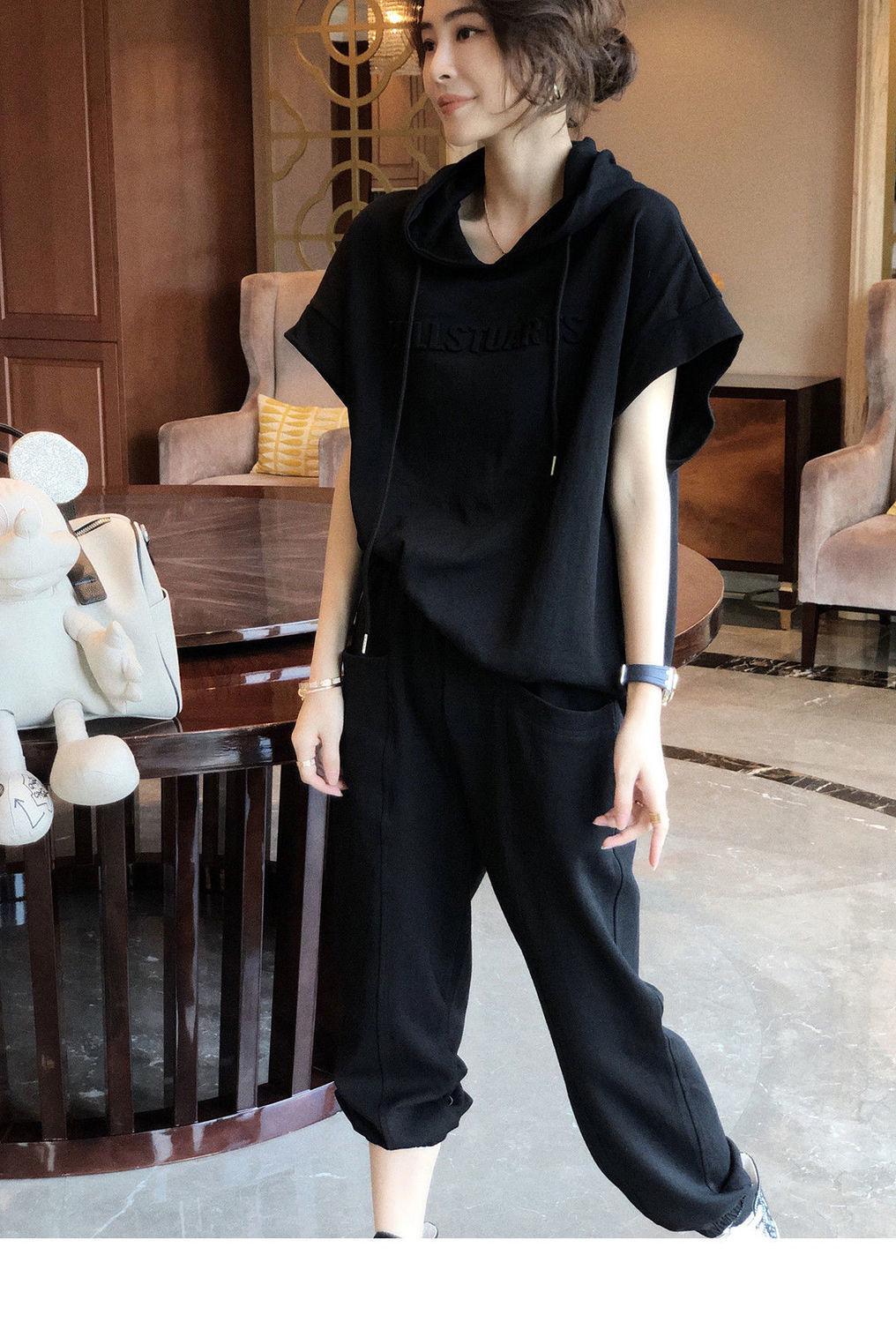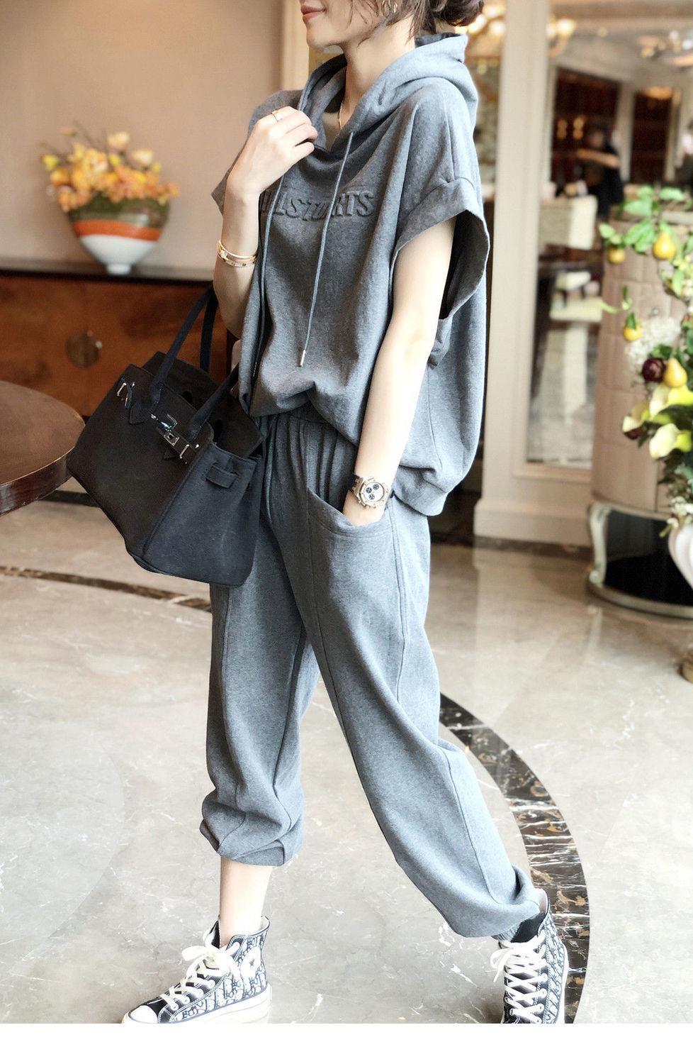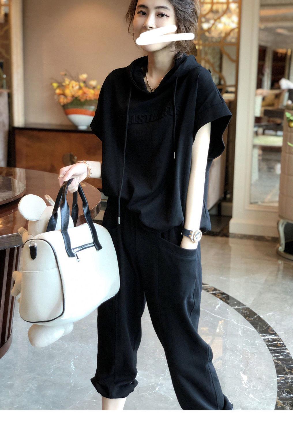 Traje deportivo de algodón [spot] de estilo extranjero, moda femenina, casual, de dos piezas, elegante, primavera y verano, ajustado, nueva estación europea.