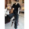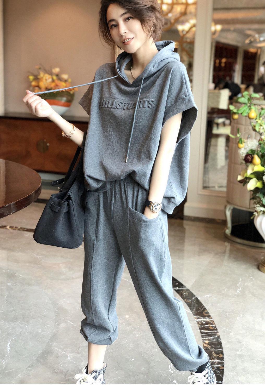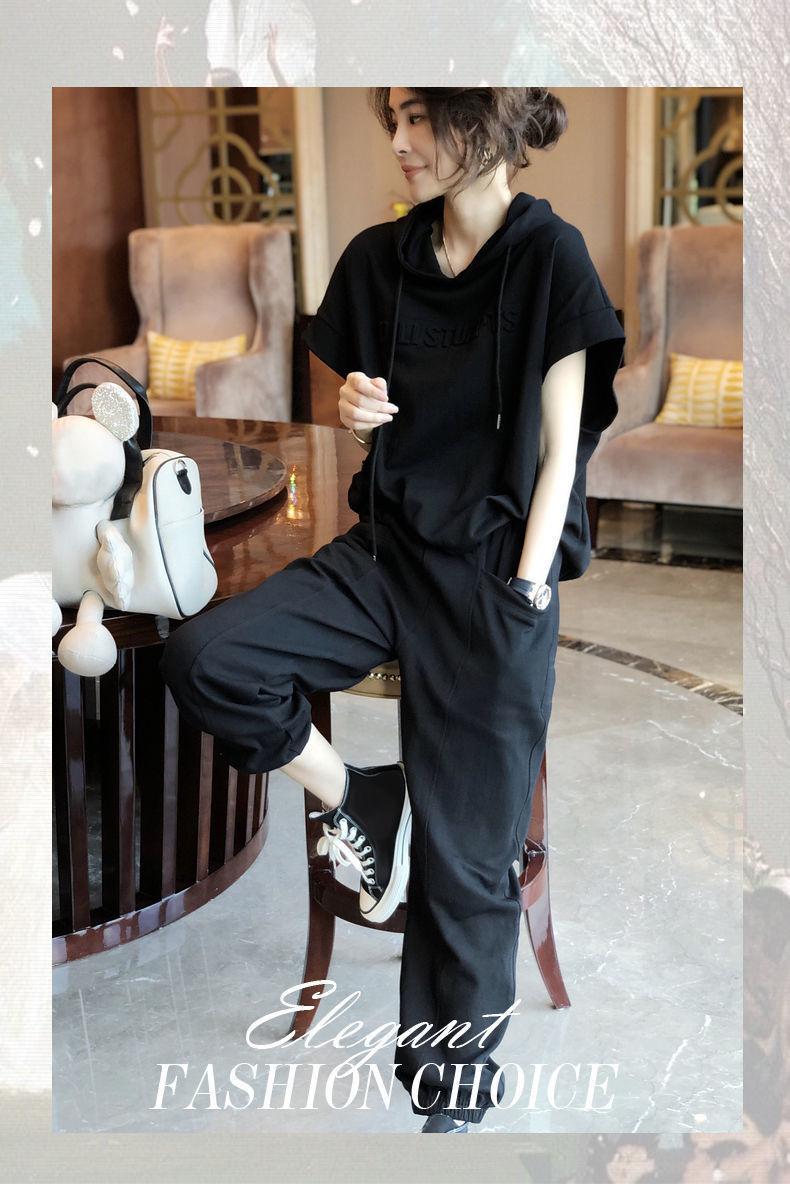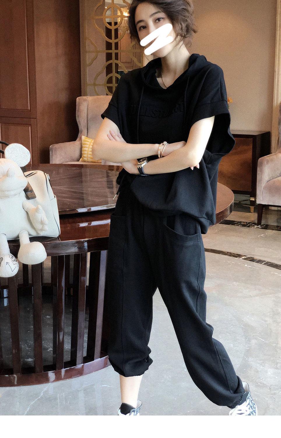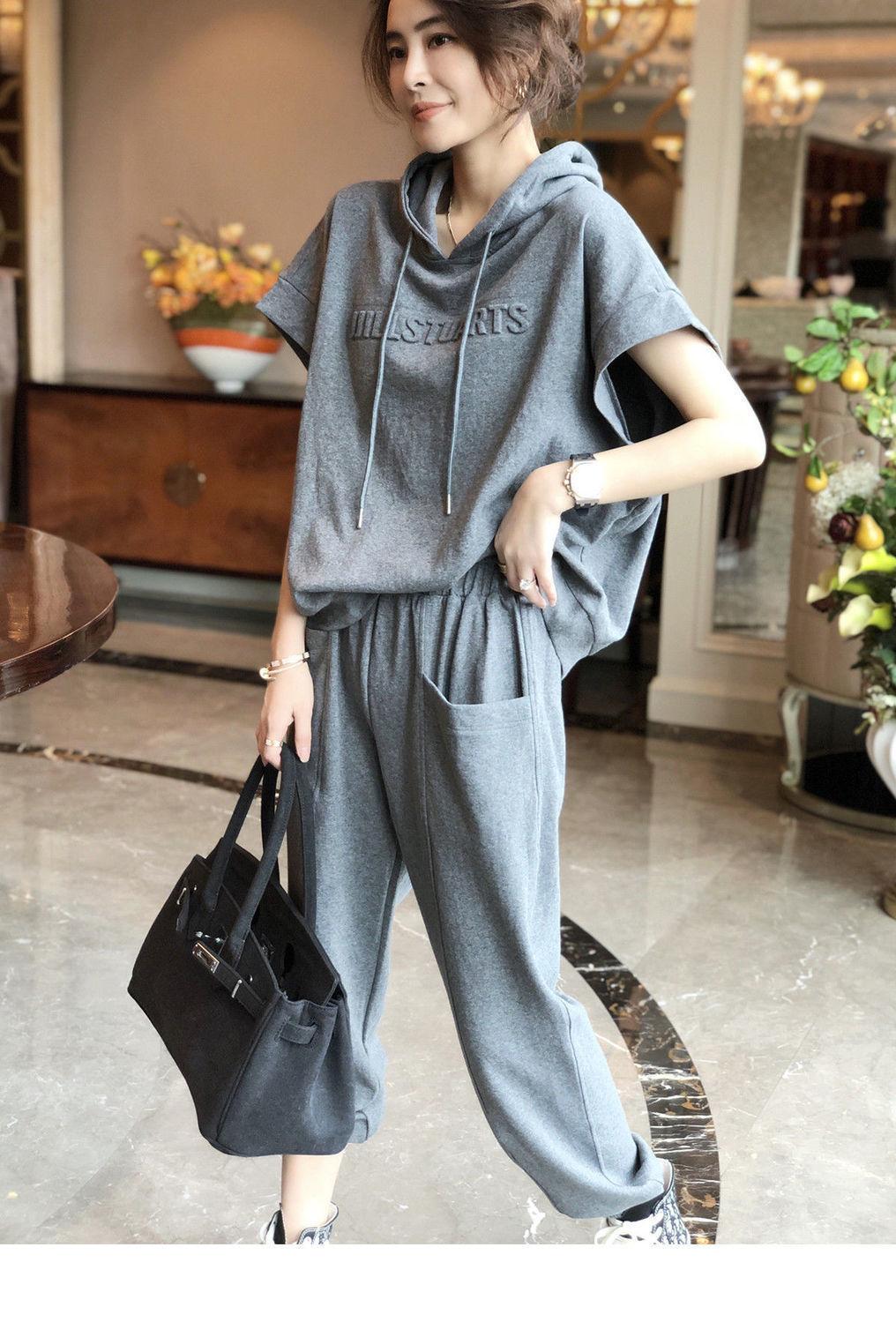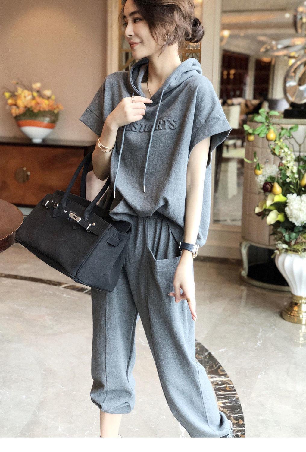 Traje deportivo de algodón [spot] de estilo extranjero, moda femenina, casual, de dos piezas, elegante, primavera y verano, ajustado, nueva estación europea.