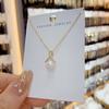 Collar de perlas con colgante redondo, collar de piedras de cristal para mujer, collar de clavícula con un estilo moderno y elegante.