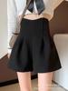 Pantalones cortos negros para mujer, primavera y verano 2024, tallas grandes, para chicas gorditas, pantalones anchos, cintura alta, adelgazantes, pantalones casuales sueltos en forma de A.