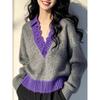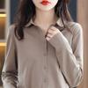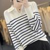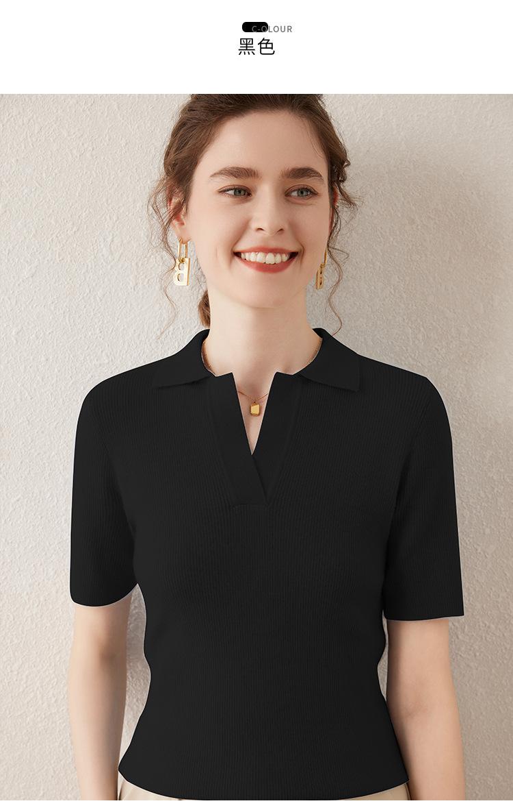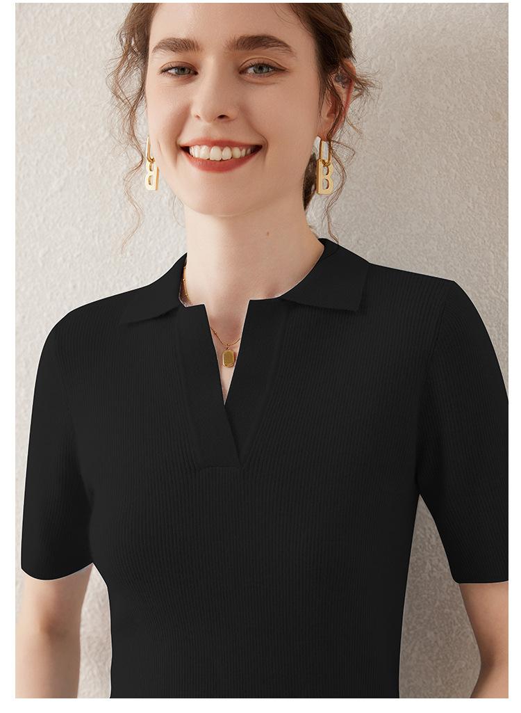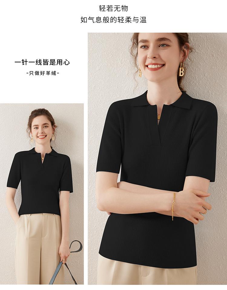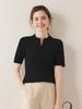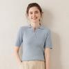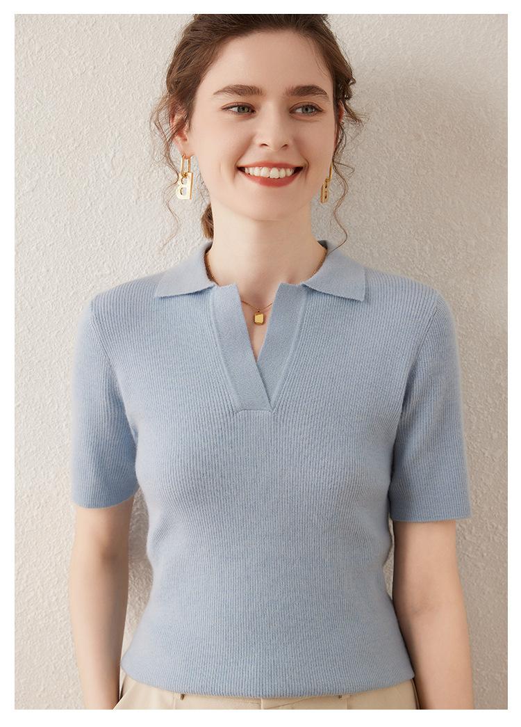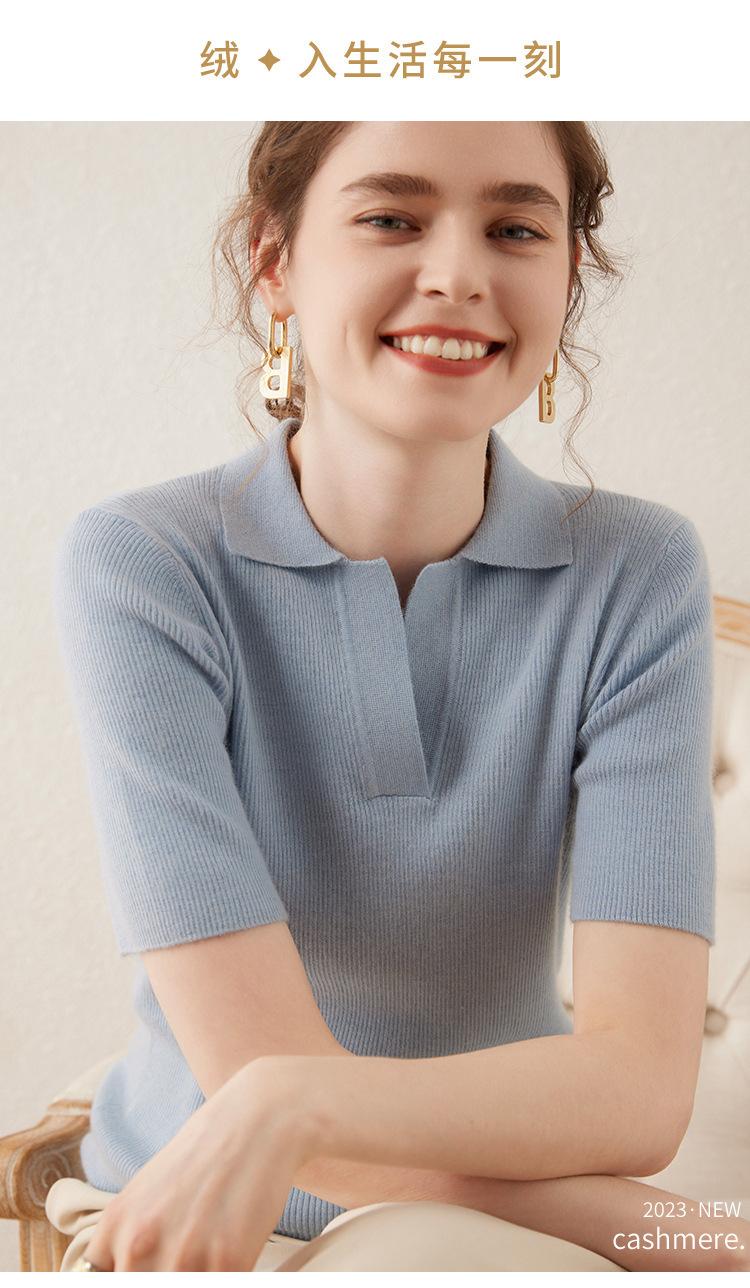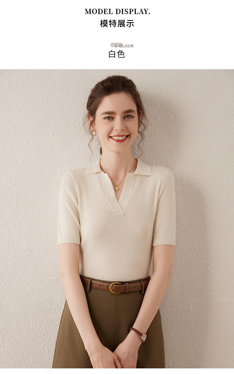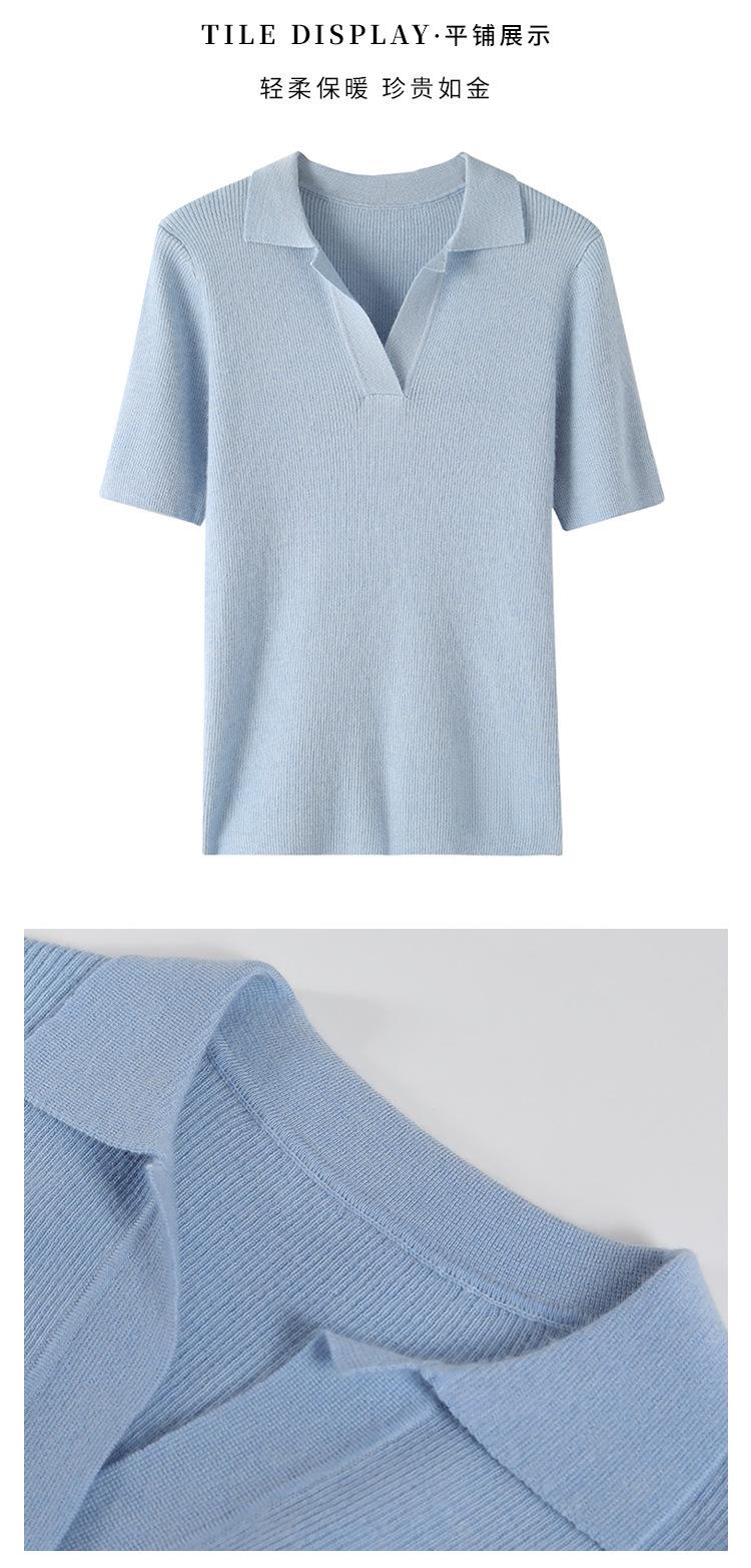 Suéter de cachemira con cuello polo, primavera y otoño de 24 años, nueva camisa de base de lana de media manga para mujer, suéter corto ajustado de estilo suave.