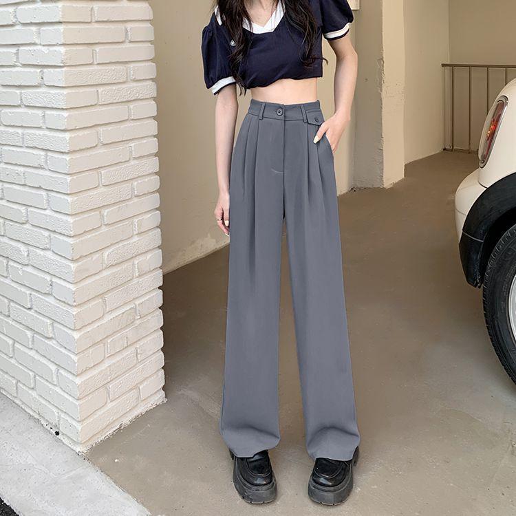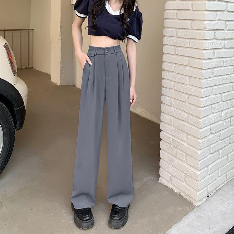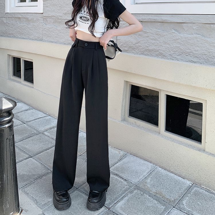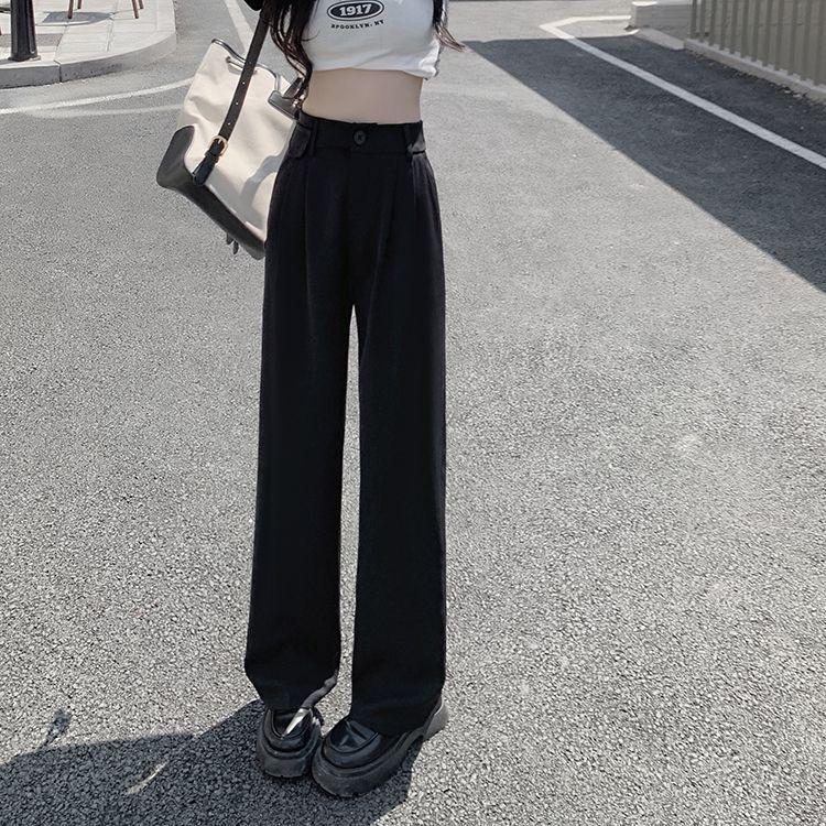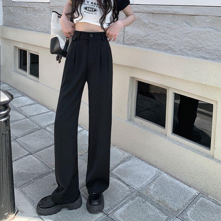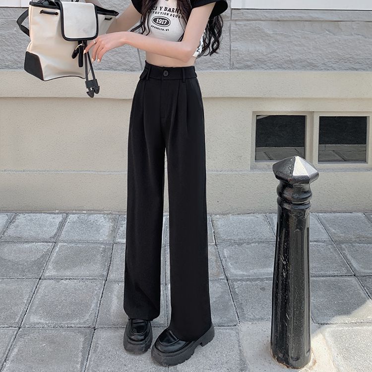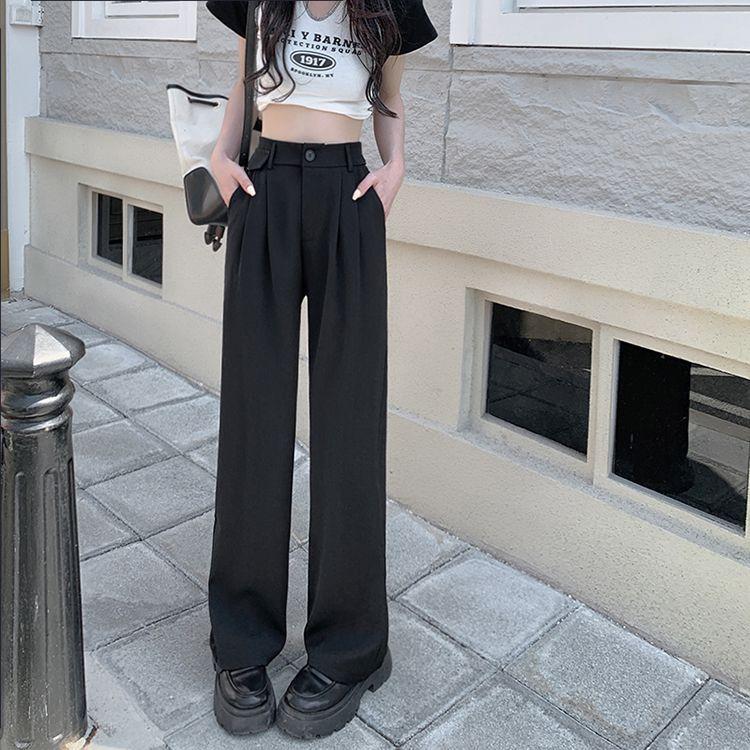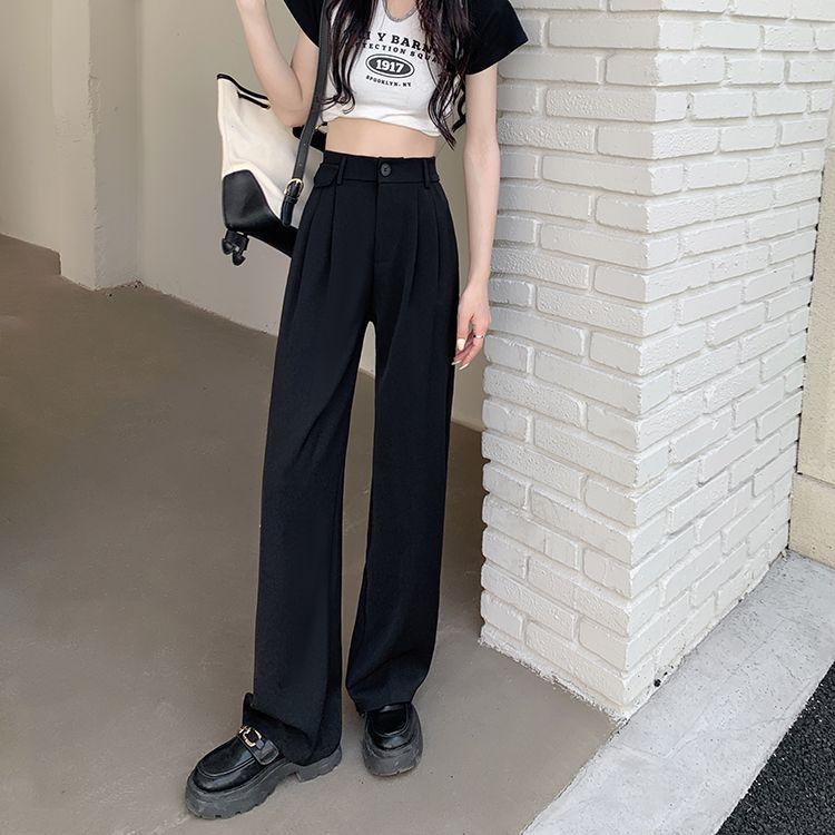 Pantalones Casuales Rectos Negros Transfronterizos para Mujer Verano 2024 Nuevos Pantalones de Pierna Ancha Sueltos de Cintura Alta Pantalones Adelgazantes