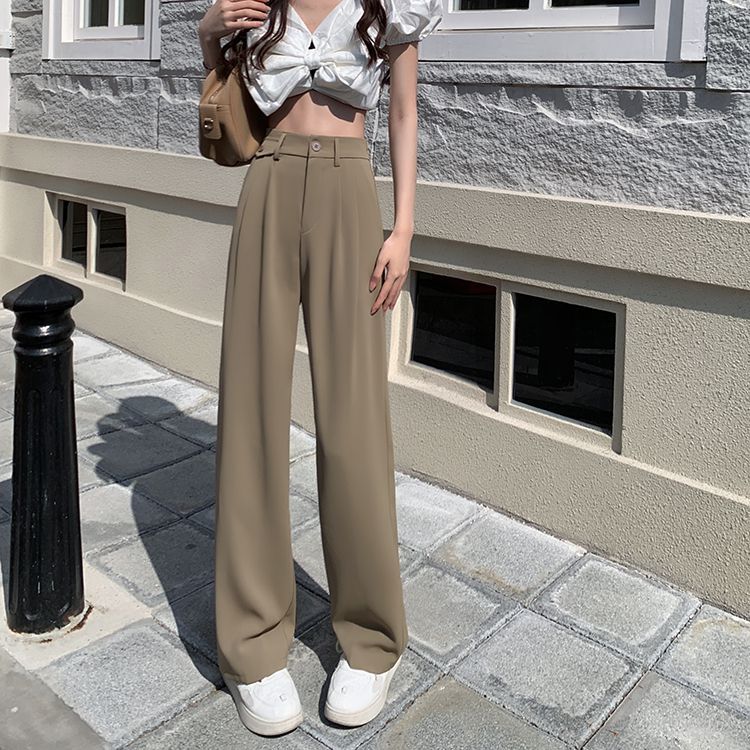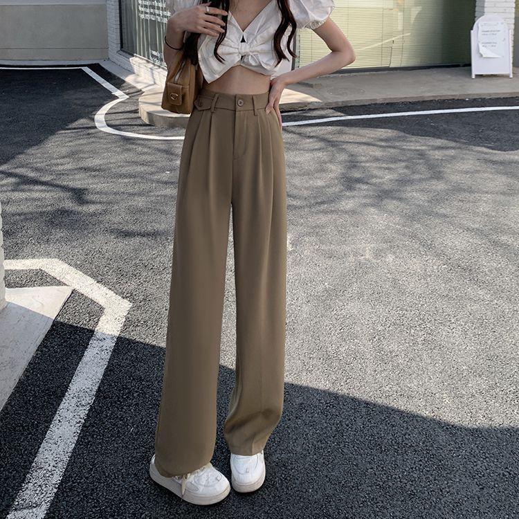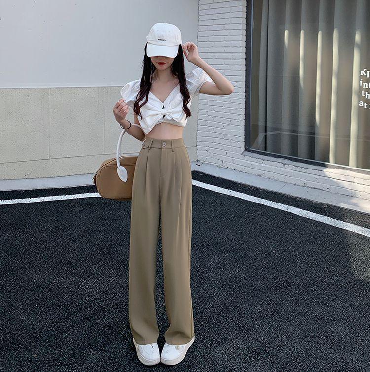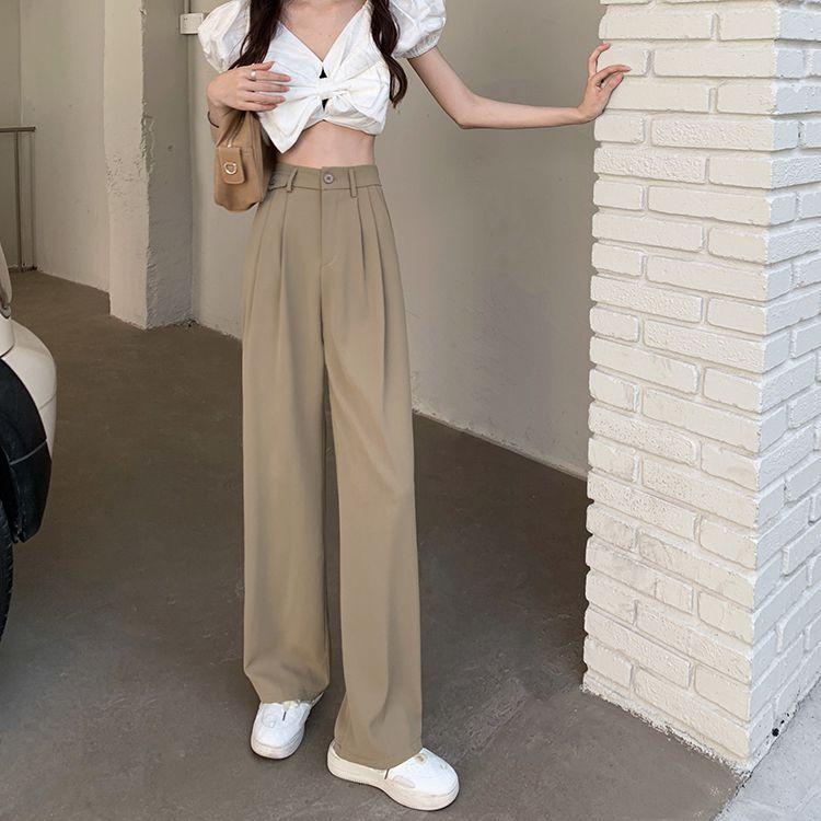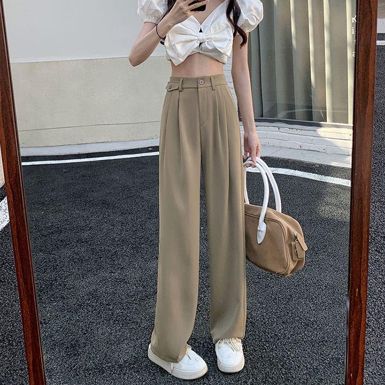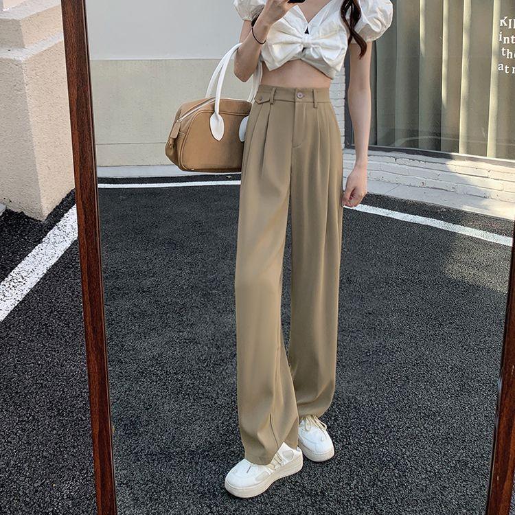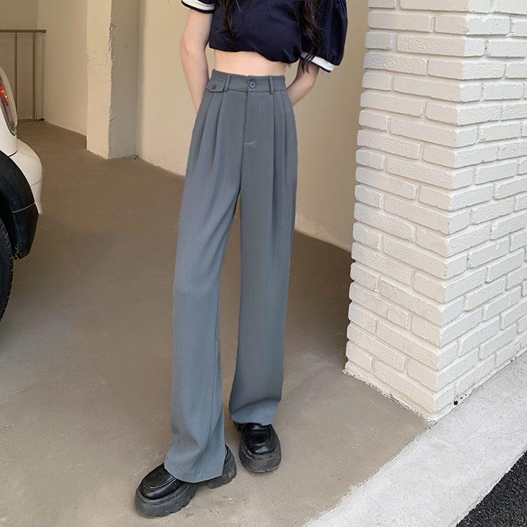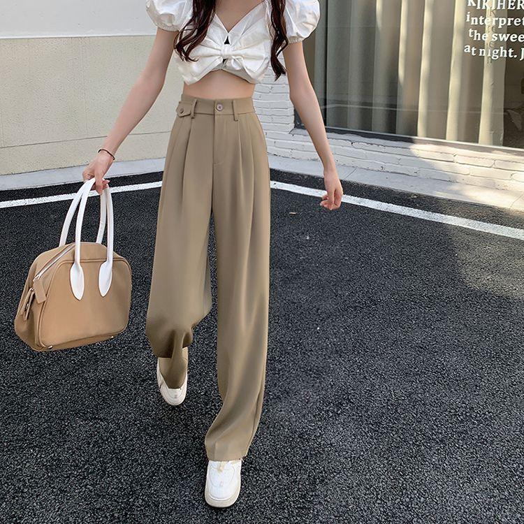 Pantalones Casuales Rectos Negros Transfronterizos para Mujer Verano 2024 Nuevos Pantalones de Pierna Ancha Sueltos de Cintura Alta Pantalones Adelgazantes