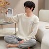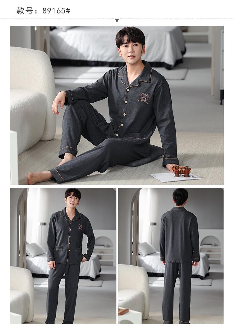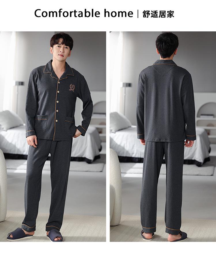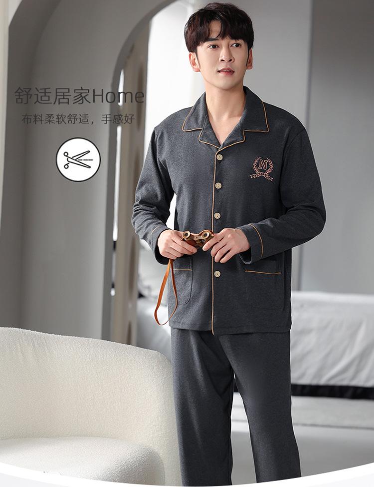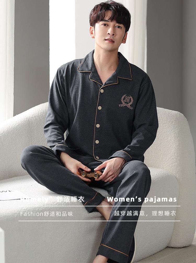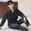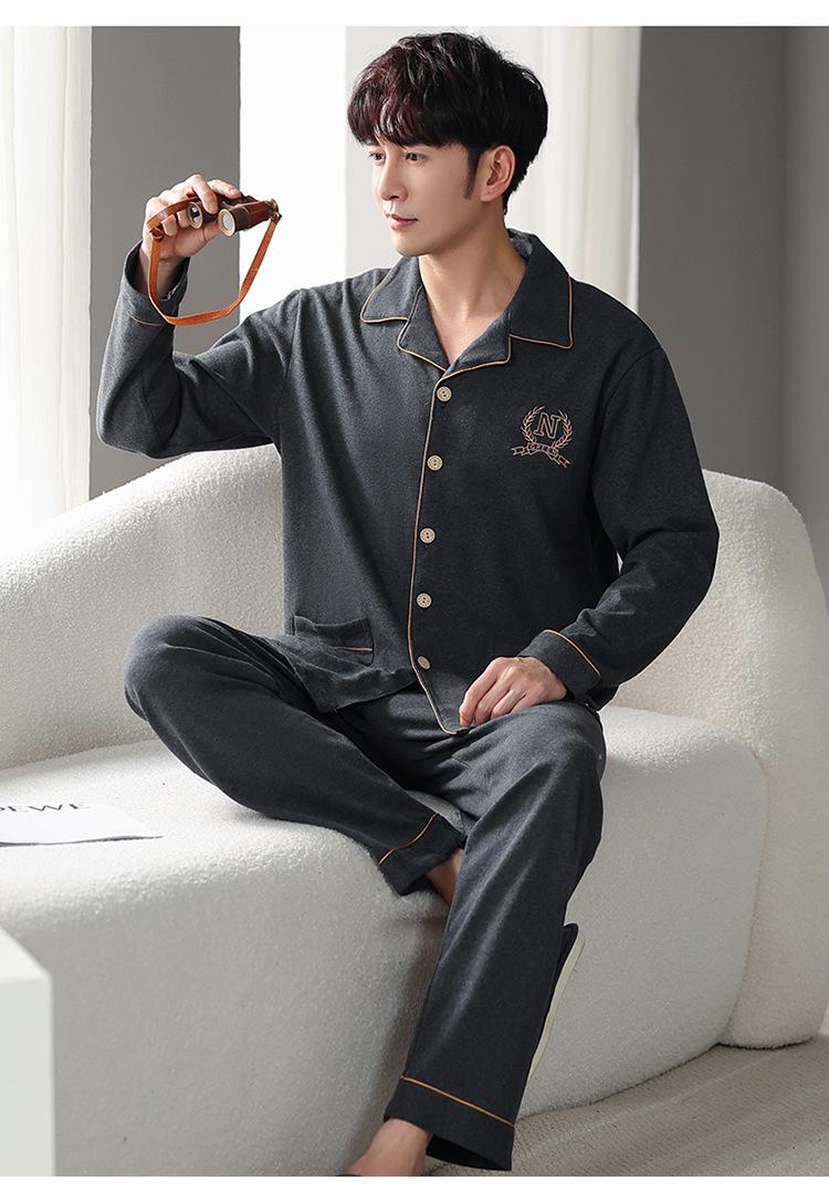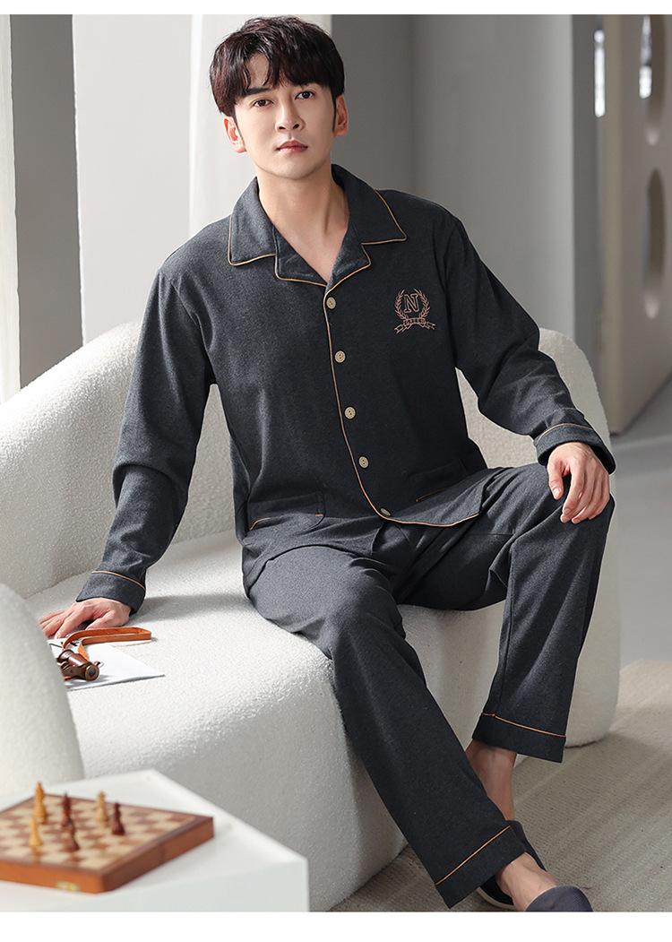 Pijamas para hombre, primavera y otoño, algodón, manga larga, cárdigan fino, talla grande, otoño e invierno, venta al por mayor
