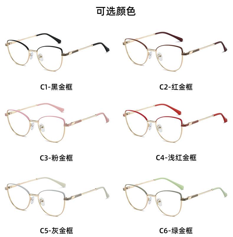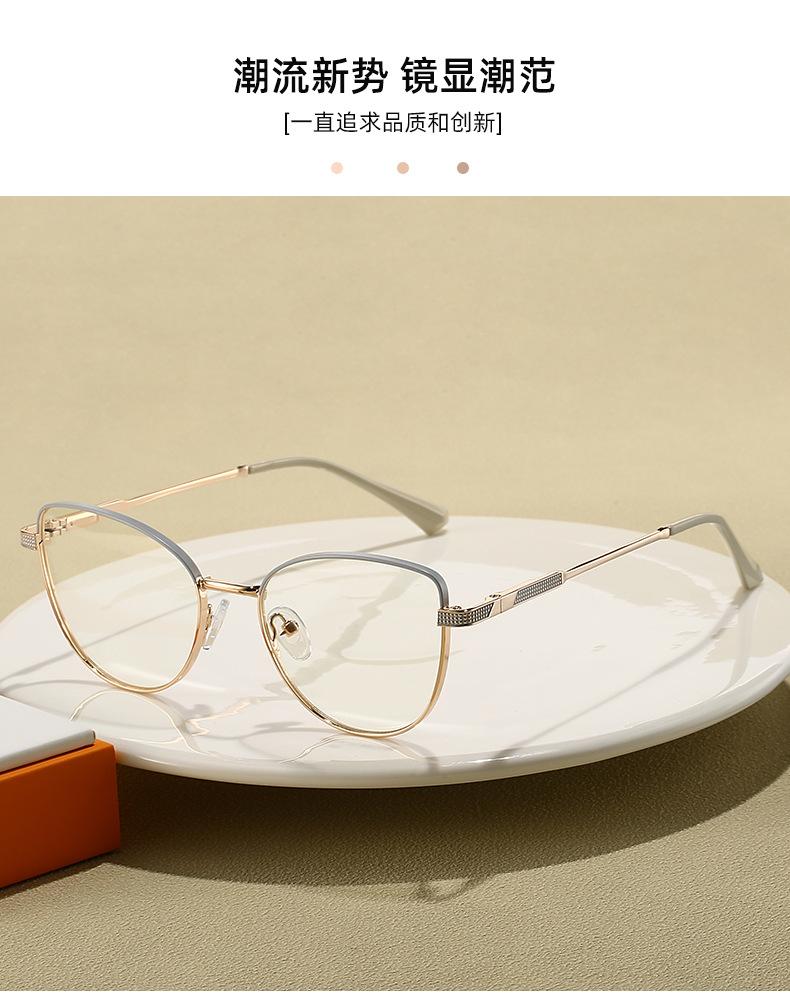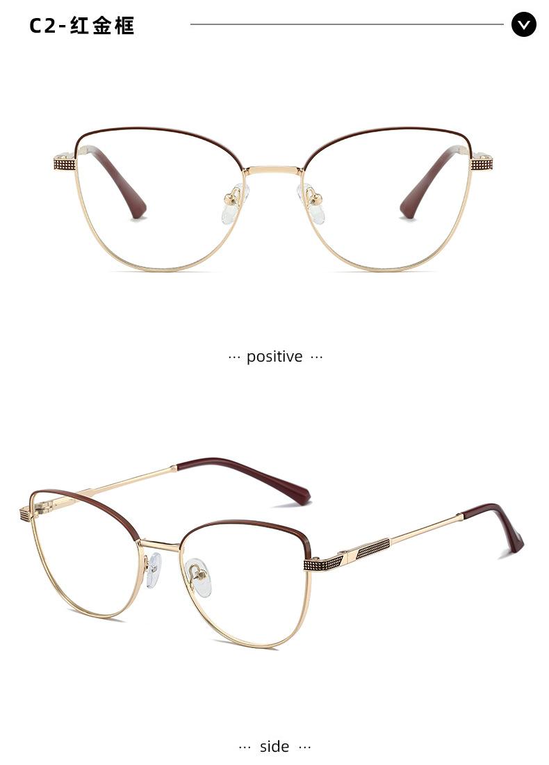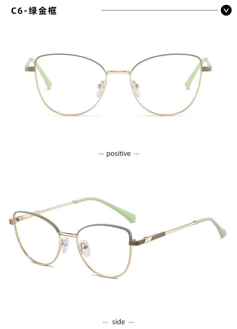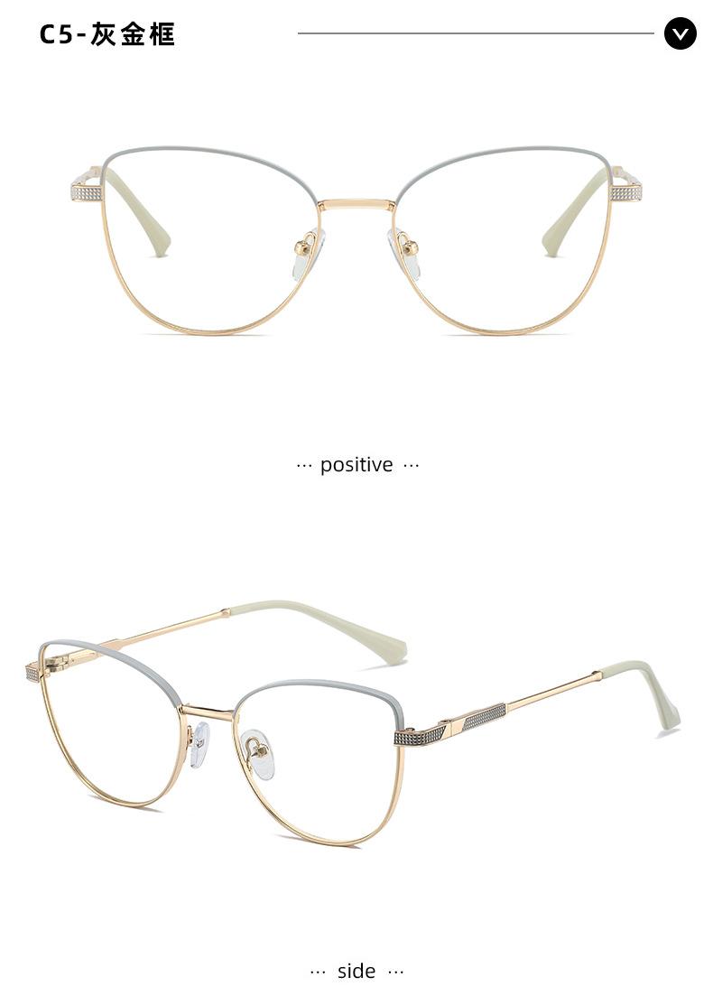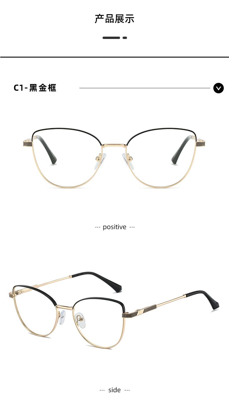 Nuevas gafas de ojo de gato transfronterizas, moda europea y americana, gafas planas que combinan con todo, montura de gafas retro de metal antiazul, alta sensibilidad