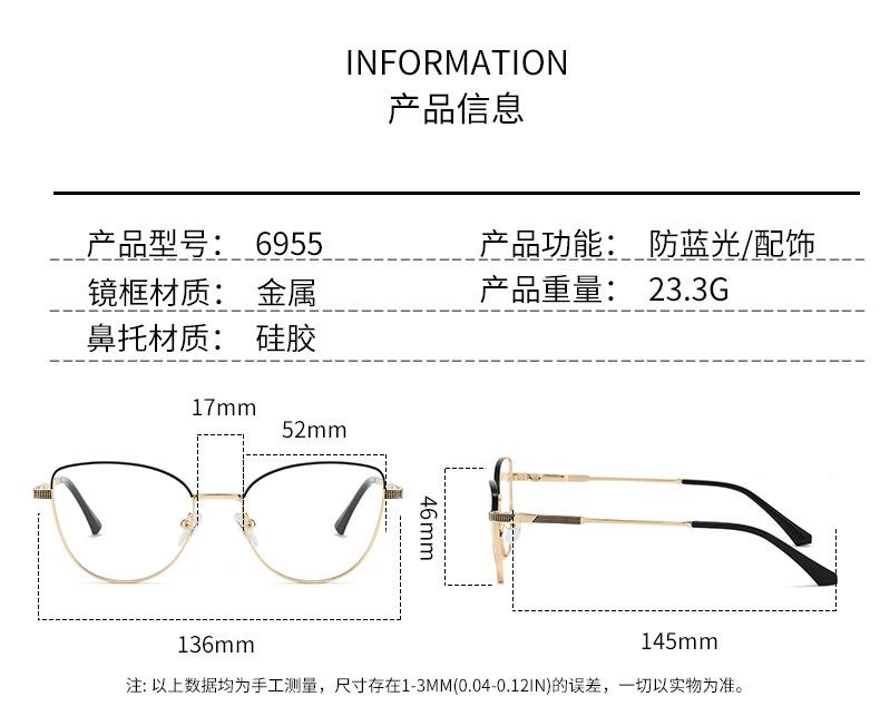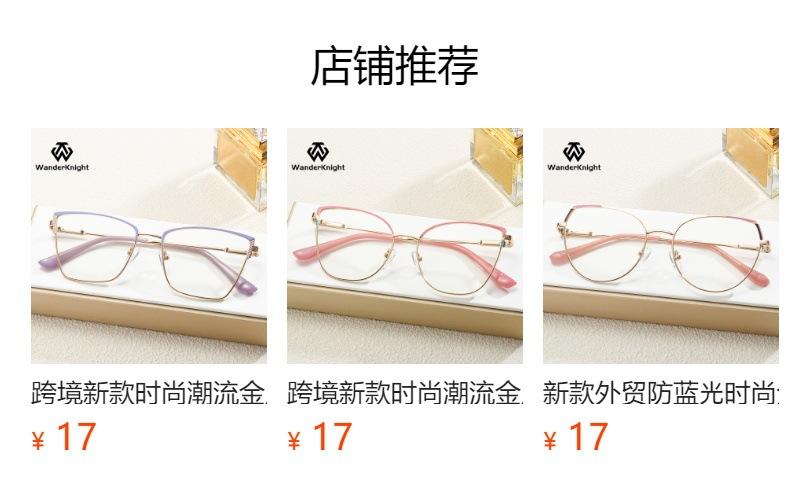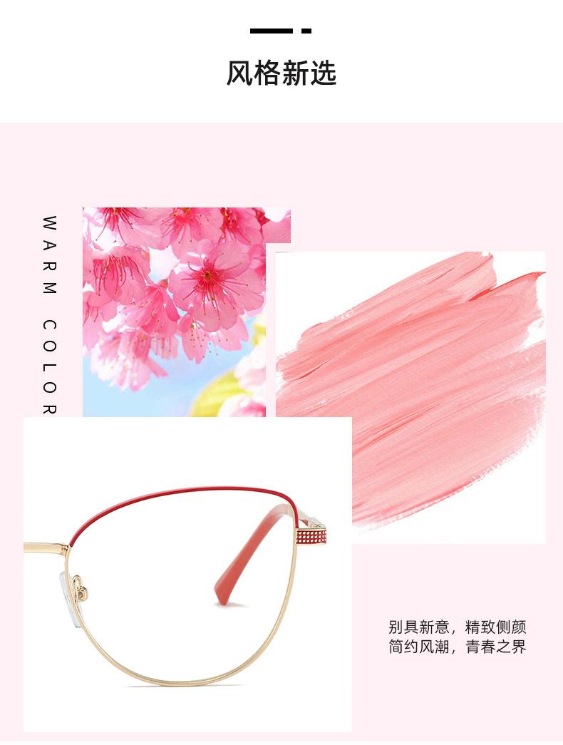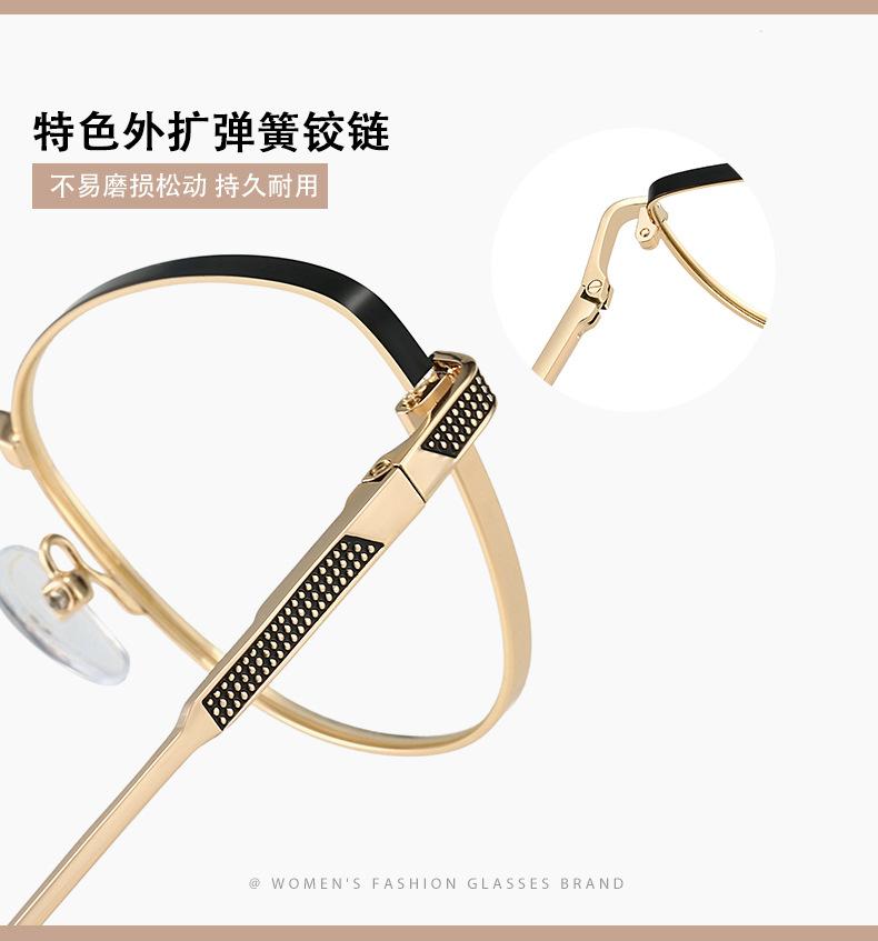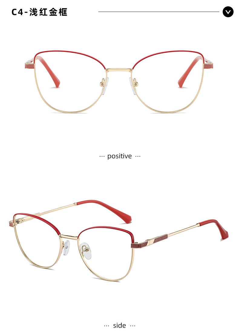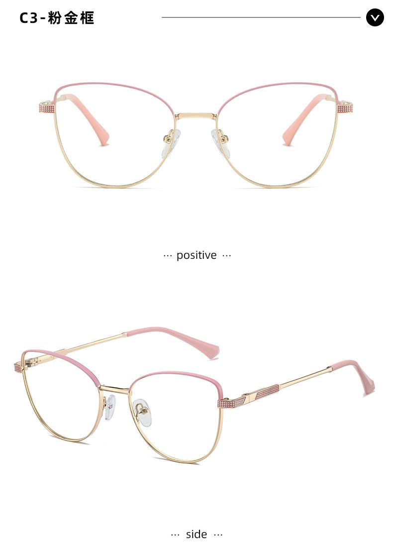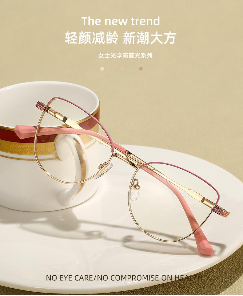 Nuevas gafas de ojo de gato transfronterizas, moda europea y americana, gafas planas que combinan con todo, montura de gafas retro de metal antiazul, alta sensibilidad