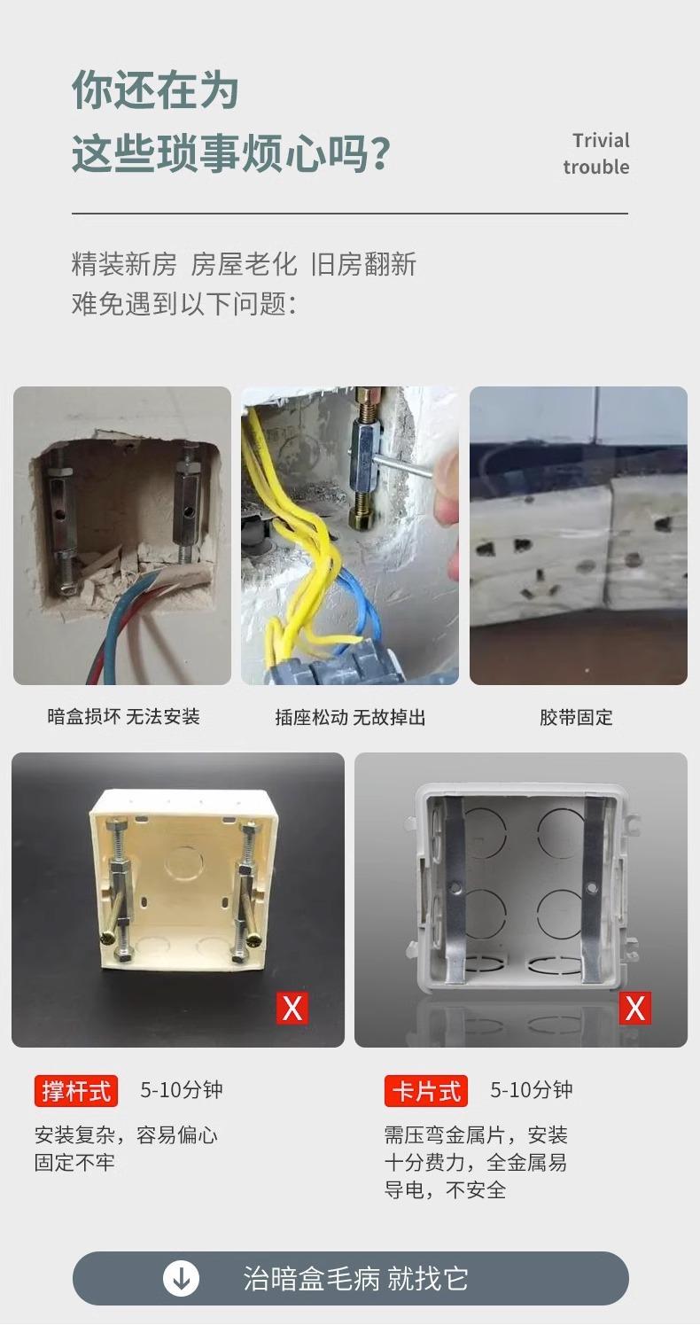 Kit de Reparación de Casete Universal Tipo 86 Caja de Conexiones Base de Enchufe Caja Base Soporte de Montaje en Pared Caja de Interruptor para Uso Doméstico