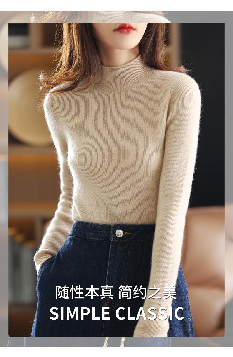 Camiseta básica de cuello alto para mujer con punto de punto ajustado 2025 Otoño e Invierno Nuevo de manga larga ajustada de cuello medio Tejido de punto negro