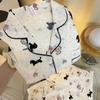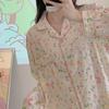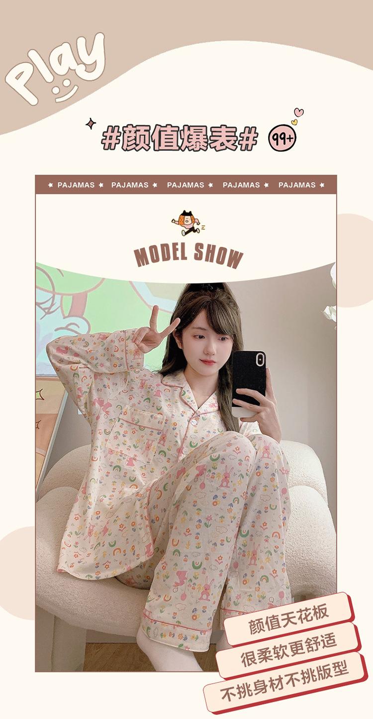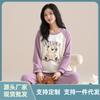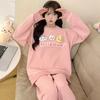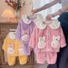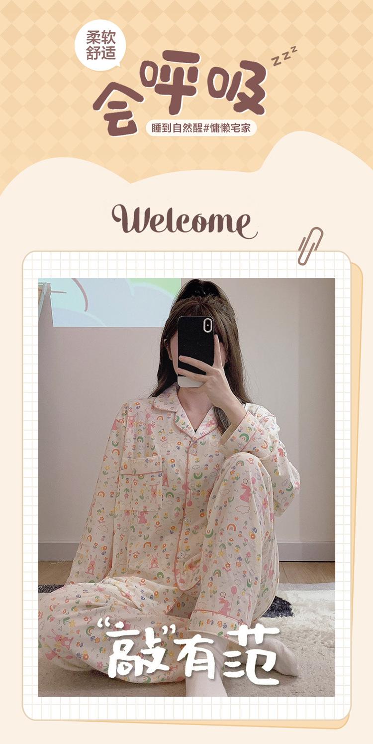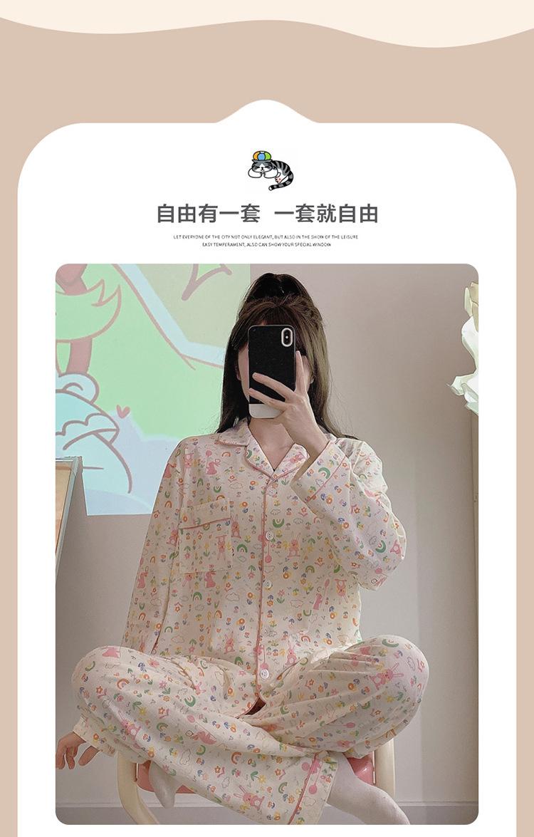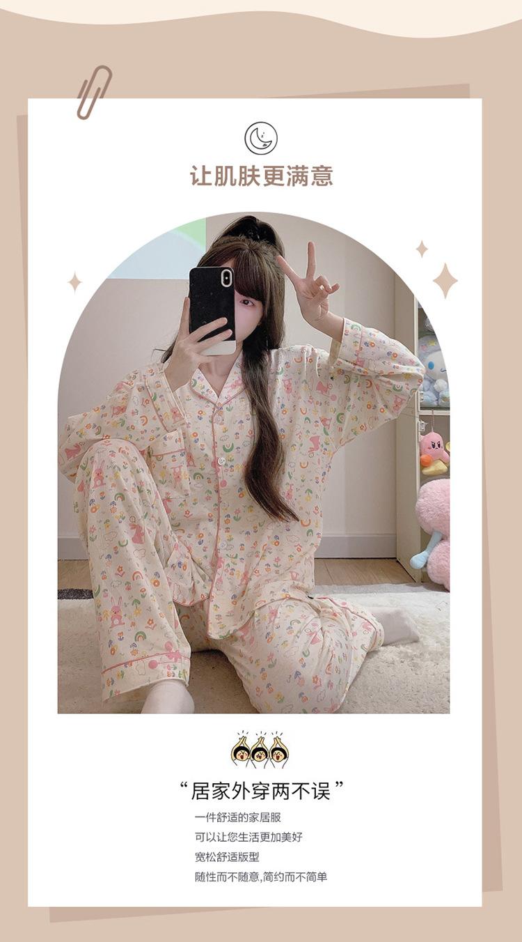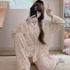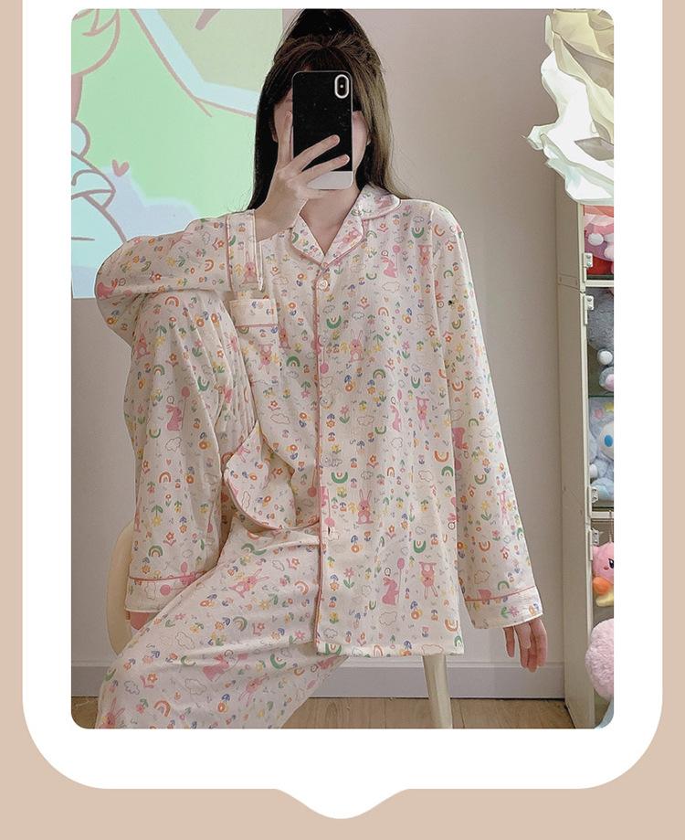 Pijamas de algodón puro con volantes de dibujos animados para mujer, primavera y otoño 2024, nuevos pantalones de manga larga con solapa de conejo, ropa de casa