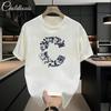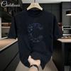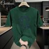 Playera de manga corta para hombre 2025 Nueva Verano Pesada para hombre Cuello redondo Algodón Camiseta Top Camisa base Patrón Moda