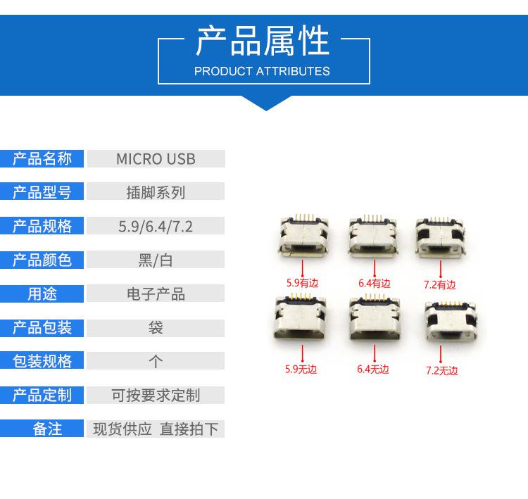 Conector de carga USB con base hembra MICRO, 5 pines, en línea, con conector de cinta Mike de 5,9/6,4/7,2 mm