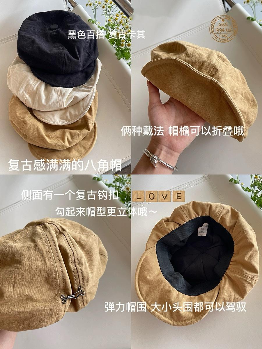 Boina fina japonesa para mujer, estilo coreano, estilo artístico retro, estilo vendedor de periódicos, moderna, con forma de nube octogonal, informal, estilo pintor callejero.