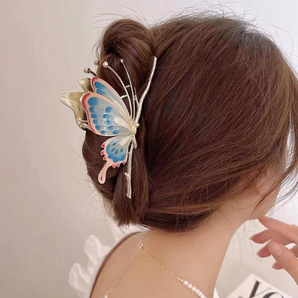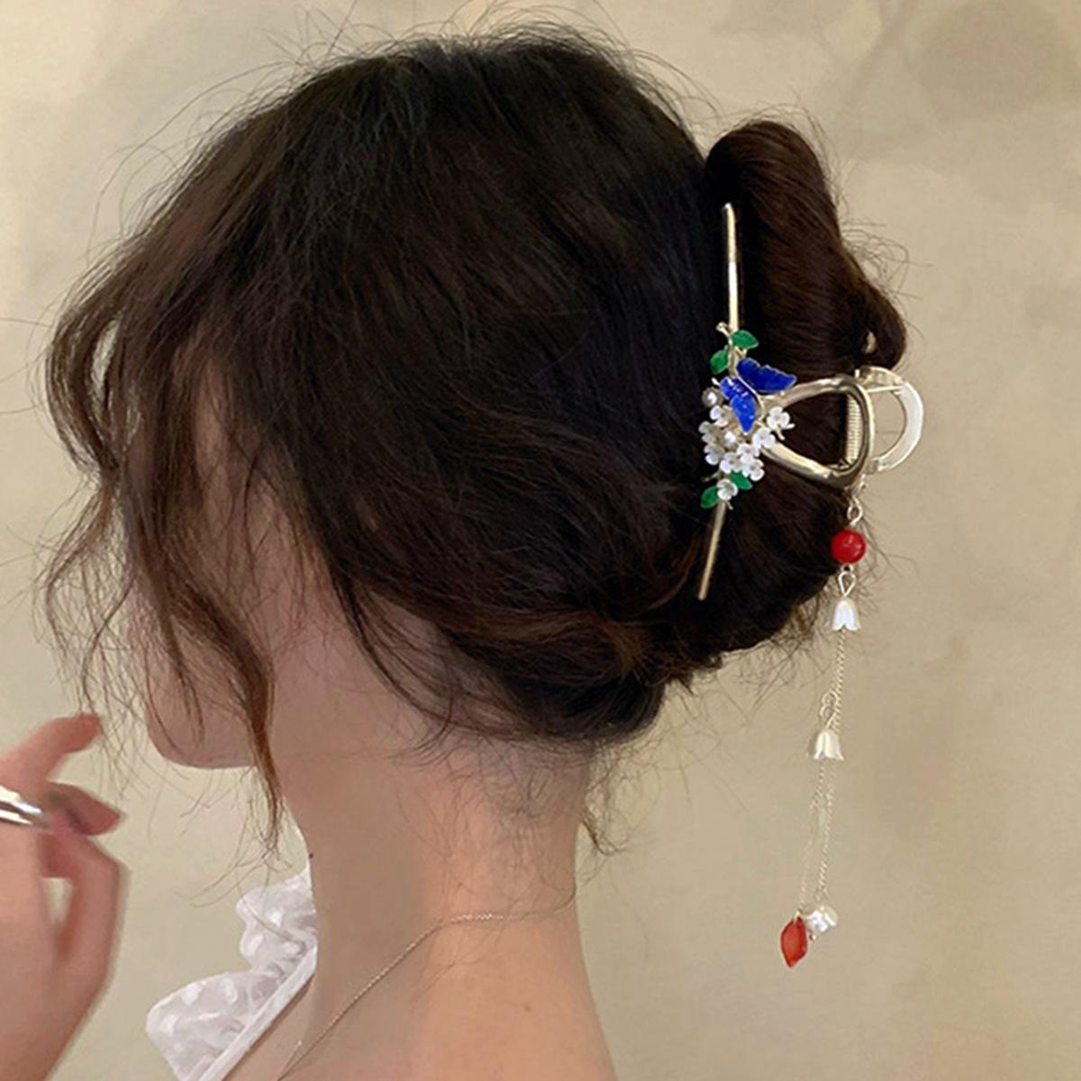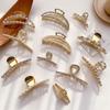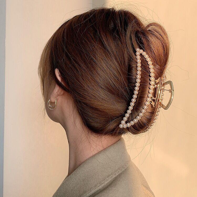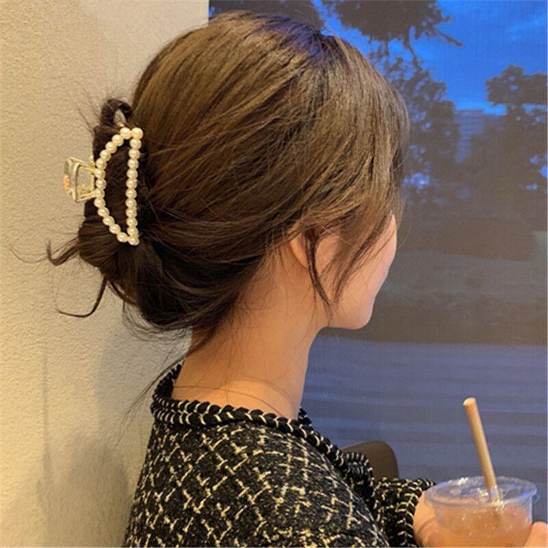Pinza Metálica Retro Coreana con Perlas para el Cabello, Pinza Geométrica para el Cabello en Forma de Disco, Pinza Grande para la Parte Posterior de la Cabeza, Accesorios para el Cabello