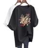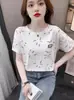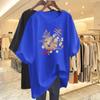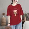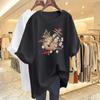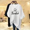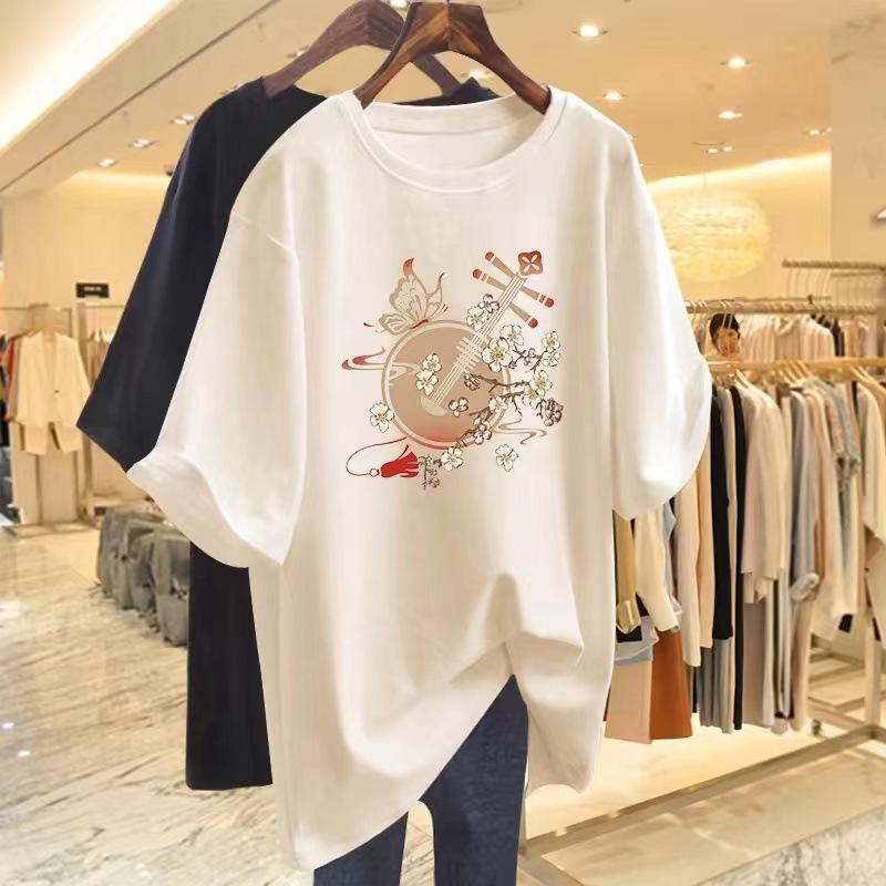 Camiseta de algodón blanco de manga corta para mujer de largo medio Verano 2024 Nuevo estampado holgado talla grande cuello redondo manga media top t