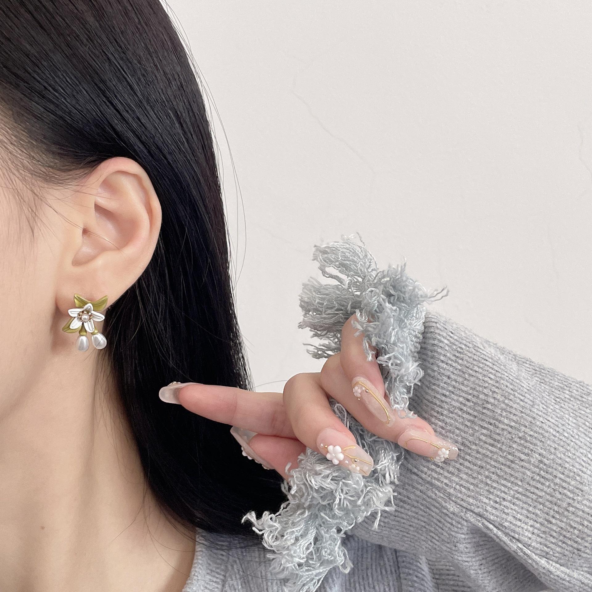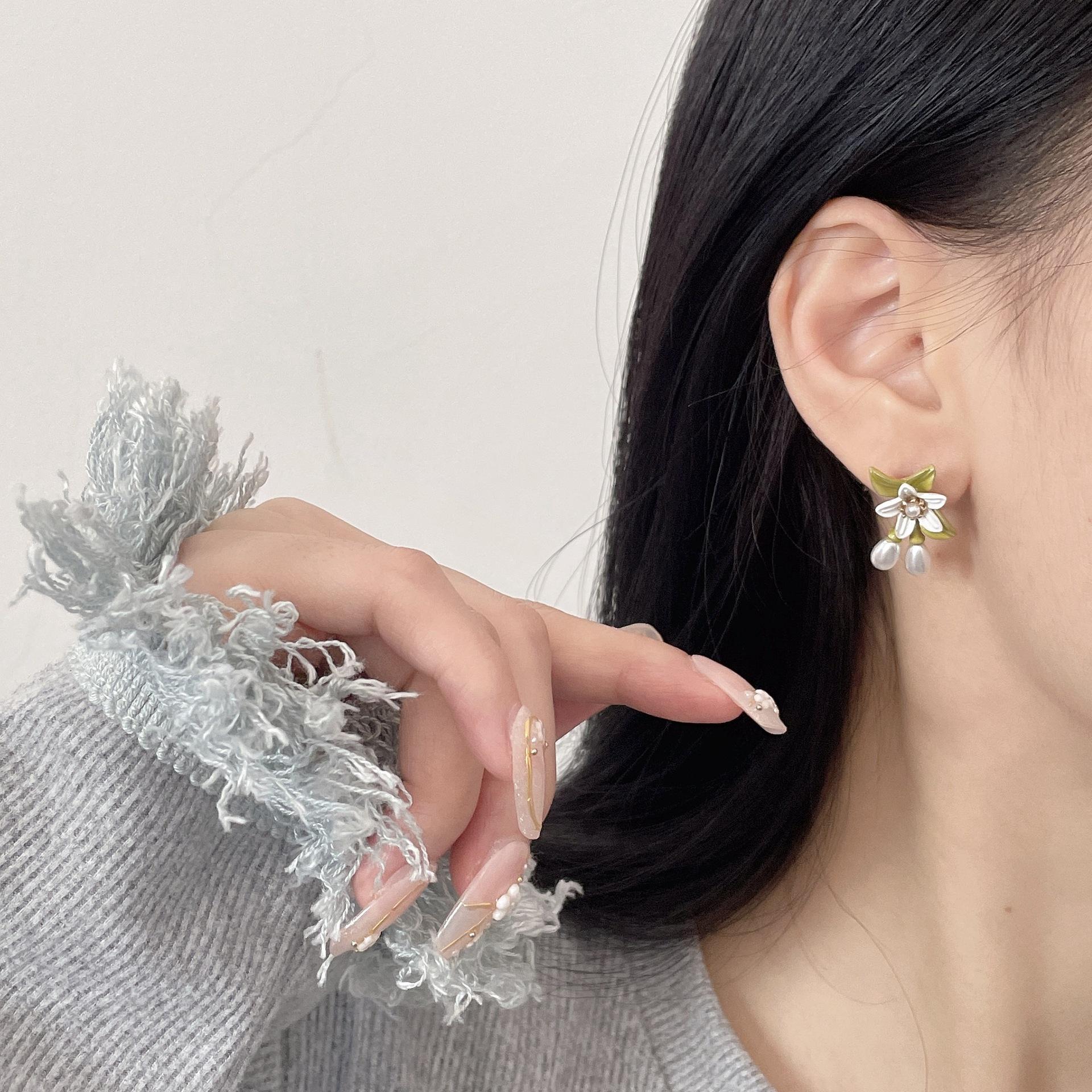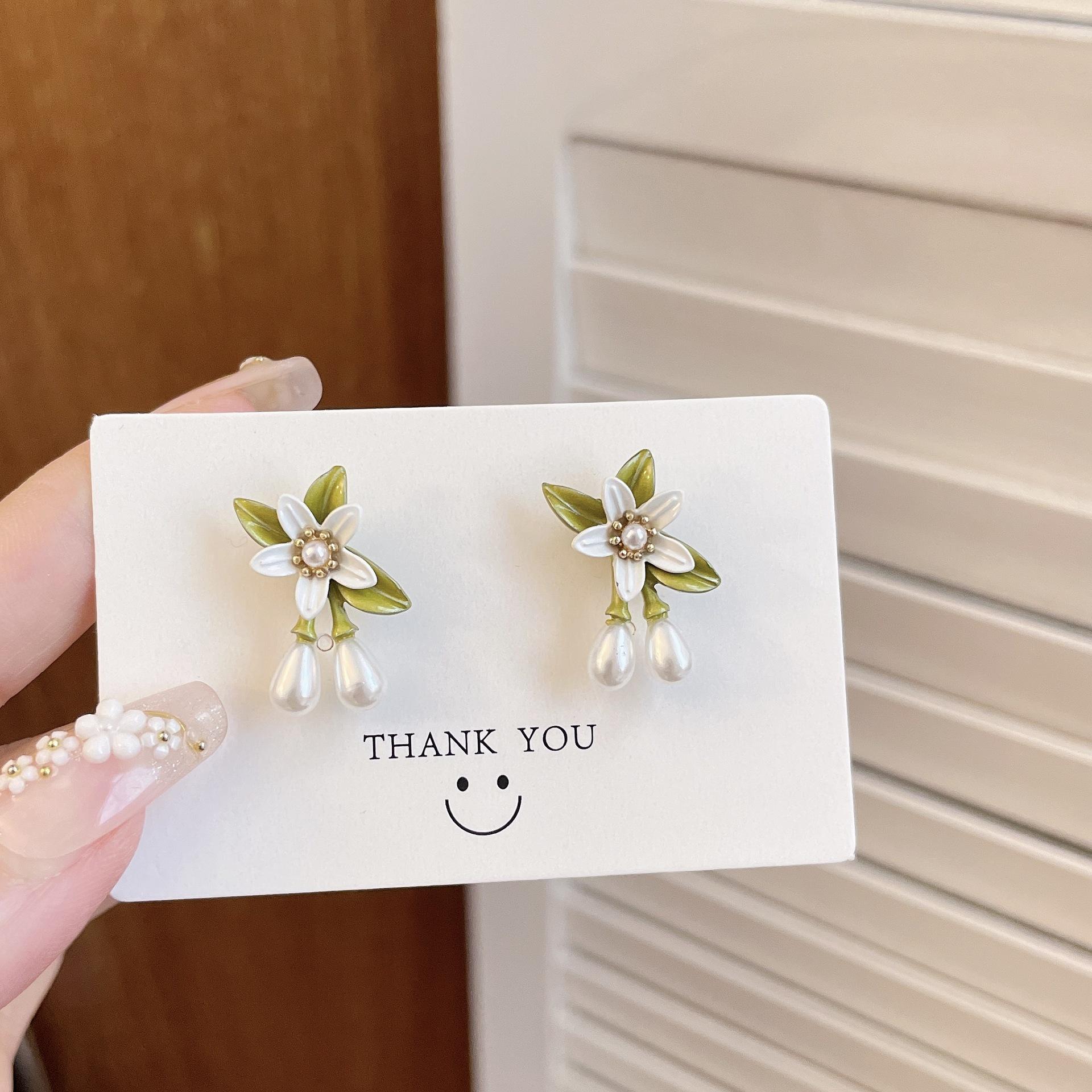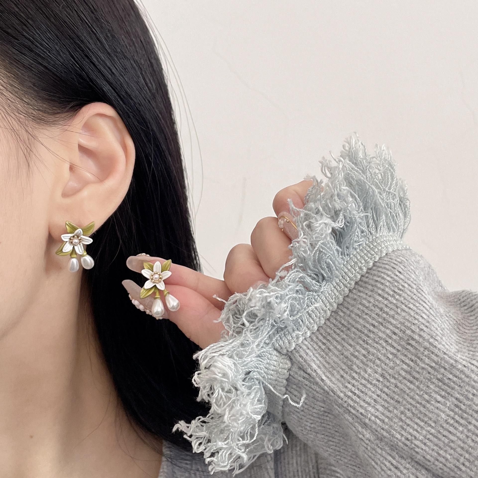 Pendientes coreanos de aguja de plata S925 con perlas de camelia frescas para mujer, nuevos pendientes de moda 2022 con clip para la oreja.