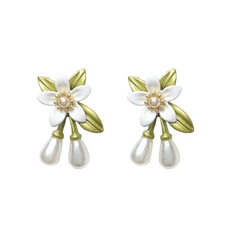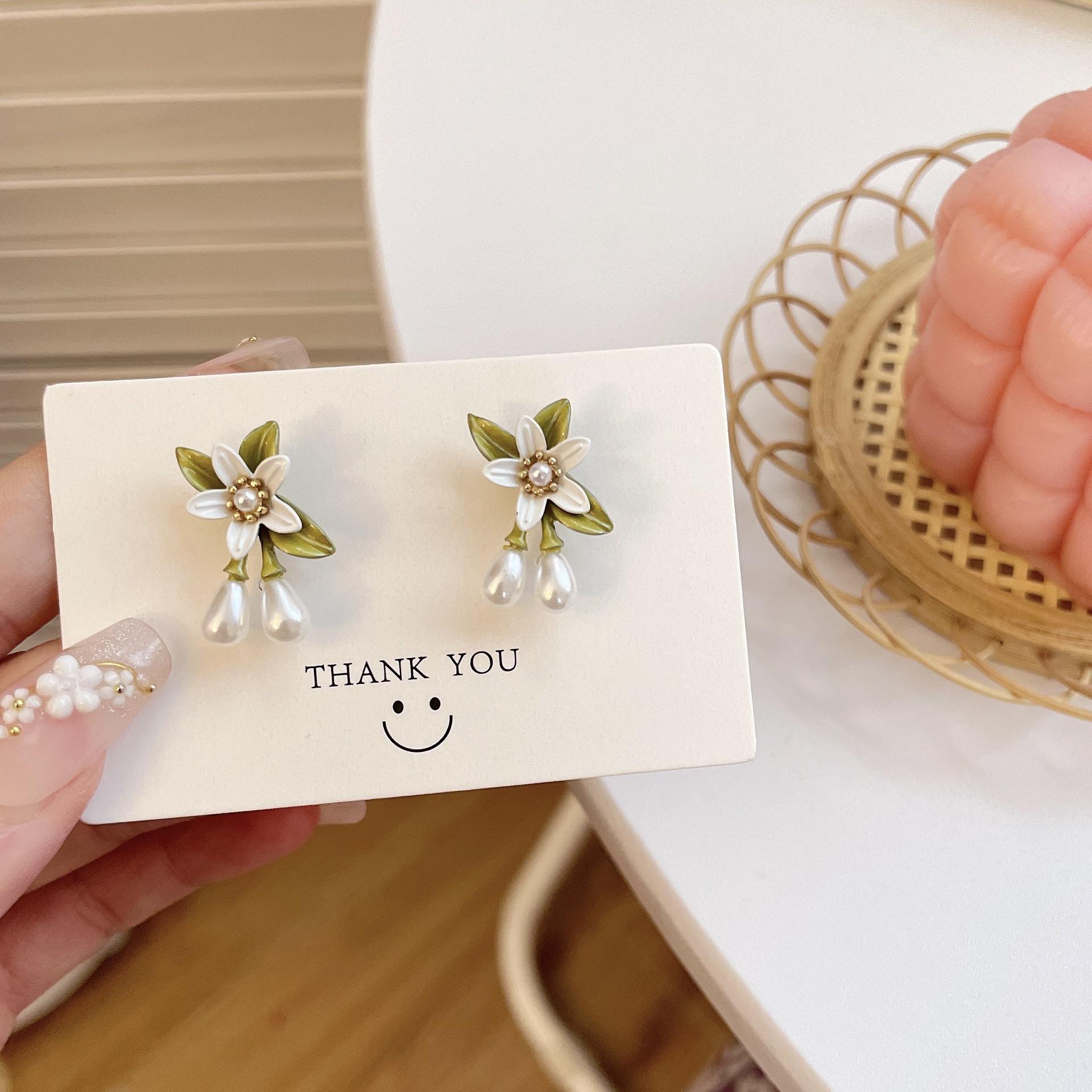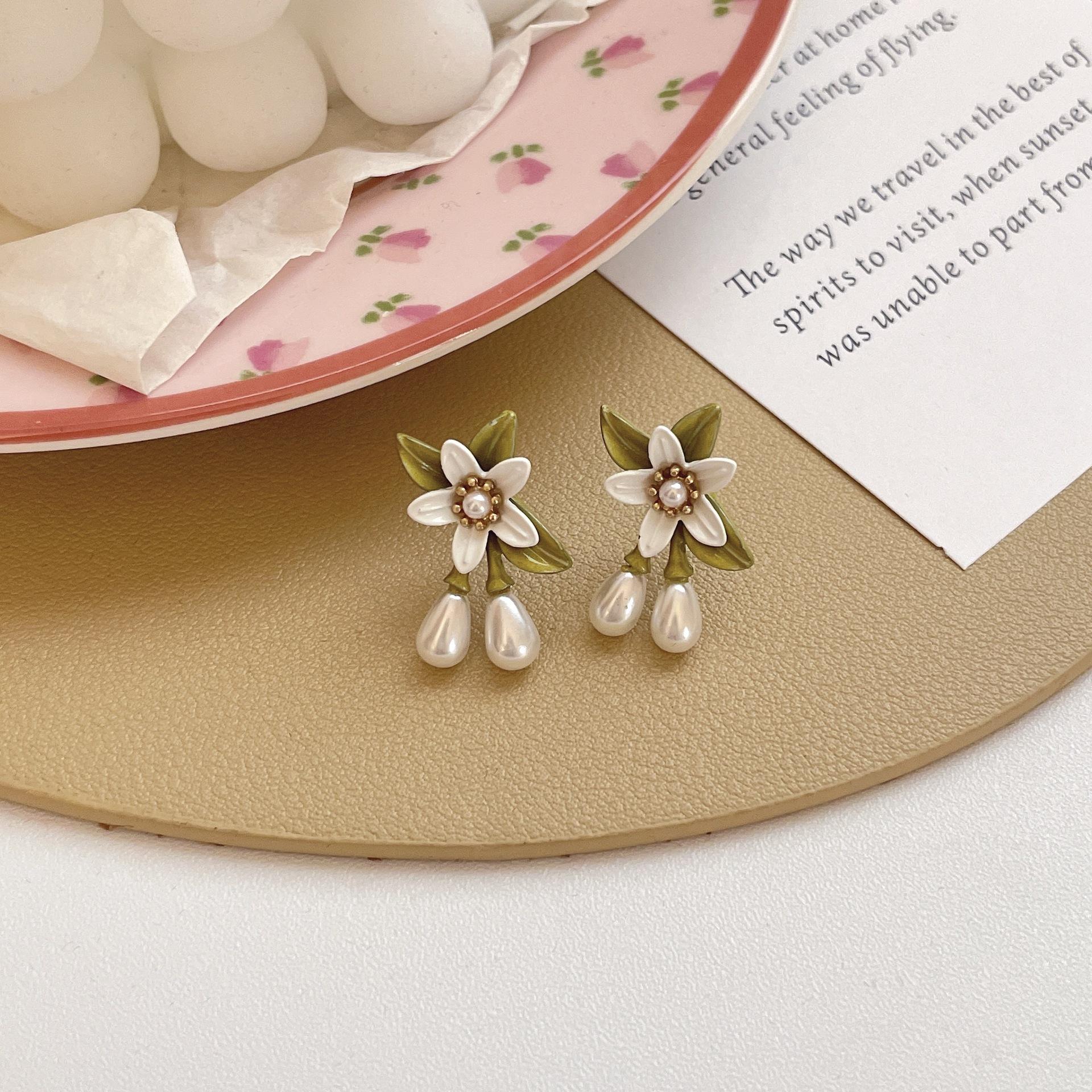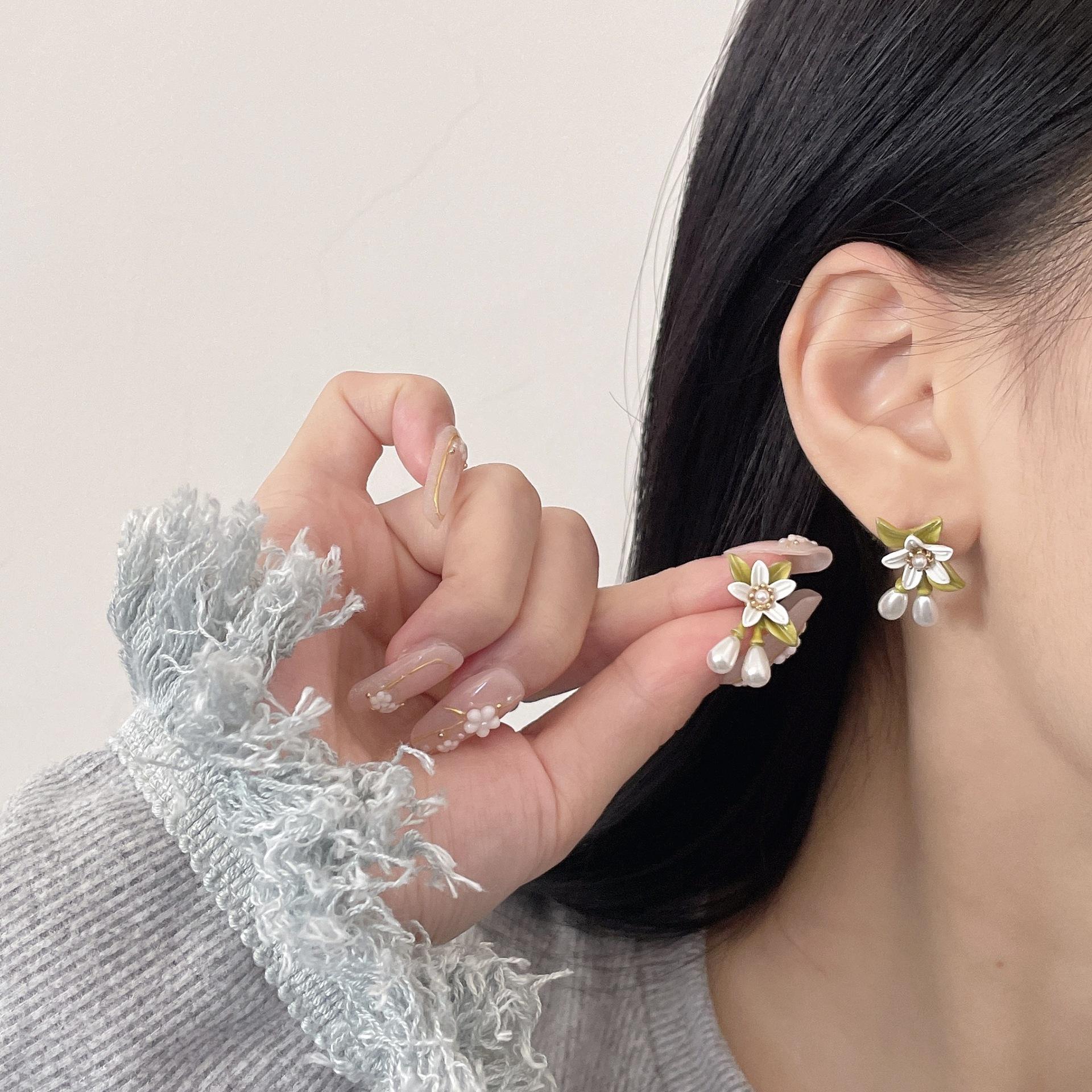 Pendientes coreanos de aguja de plata S925 con perlas de camelia frescas para mujer, nuevos pendientes de moda 2022 con clip para la oreja.