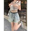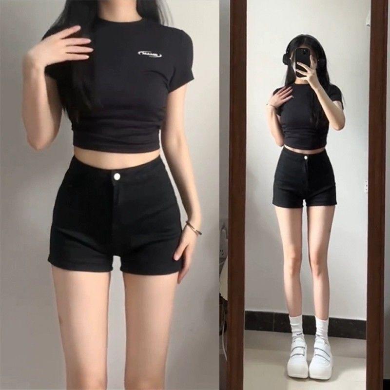 Retro chica sexy cintura alta delgados shorts de mezclilla para mujer verano nuevo versátil adelgazante dulce estilo coreano ins pantalones cortos de moda