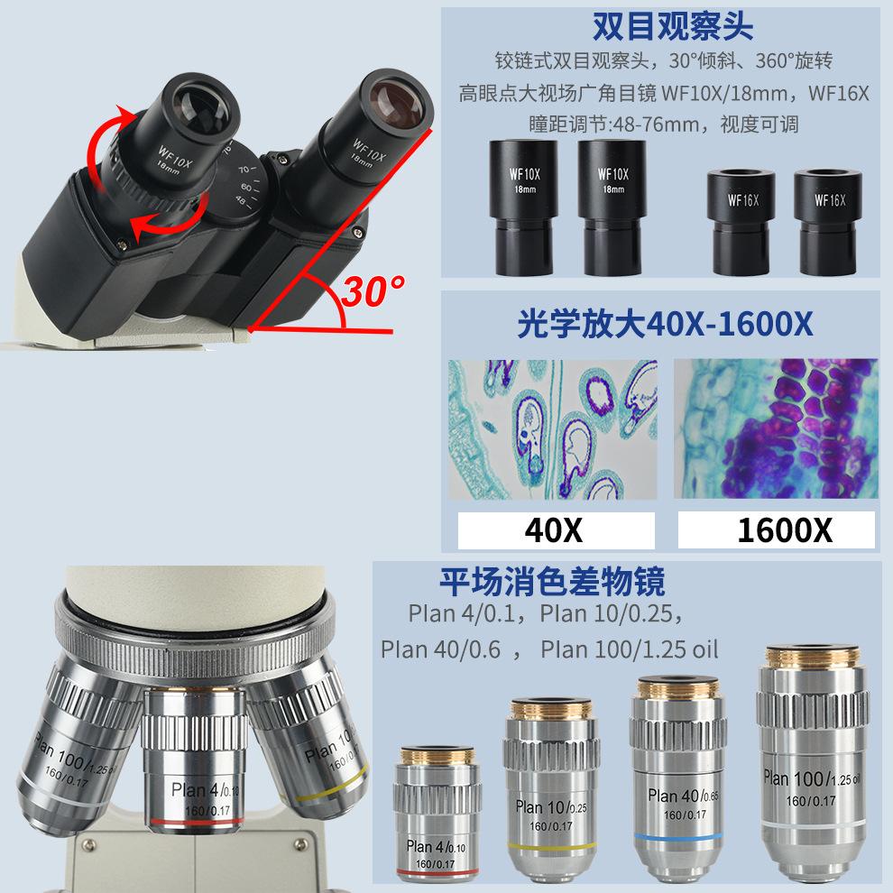Microscopio biológico binocular 40X-1600X al por mayor para detección de ganado y acuicultura.