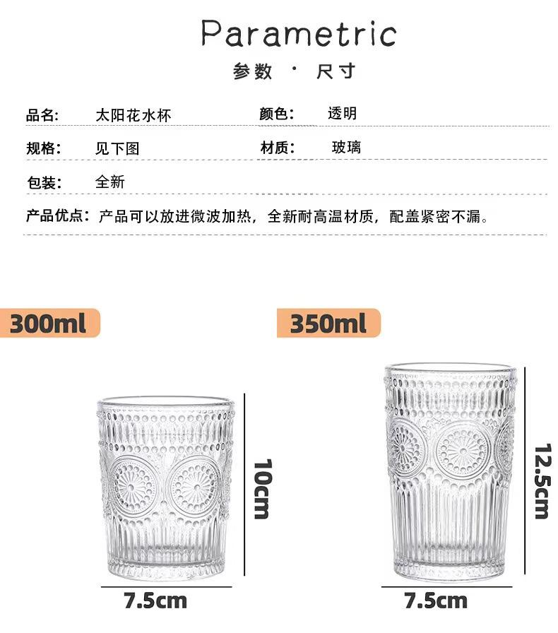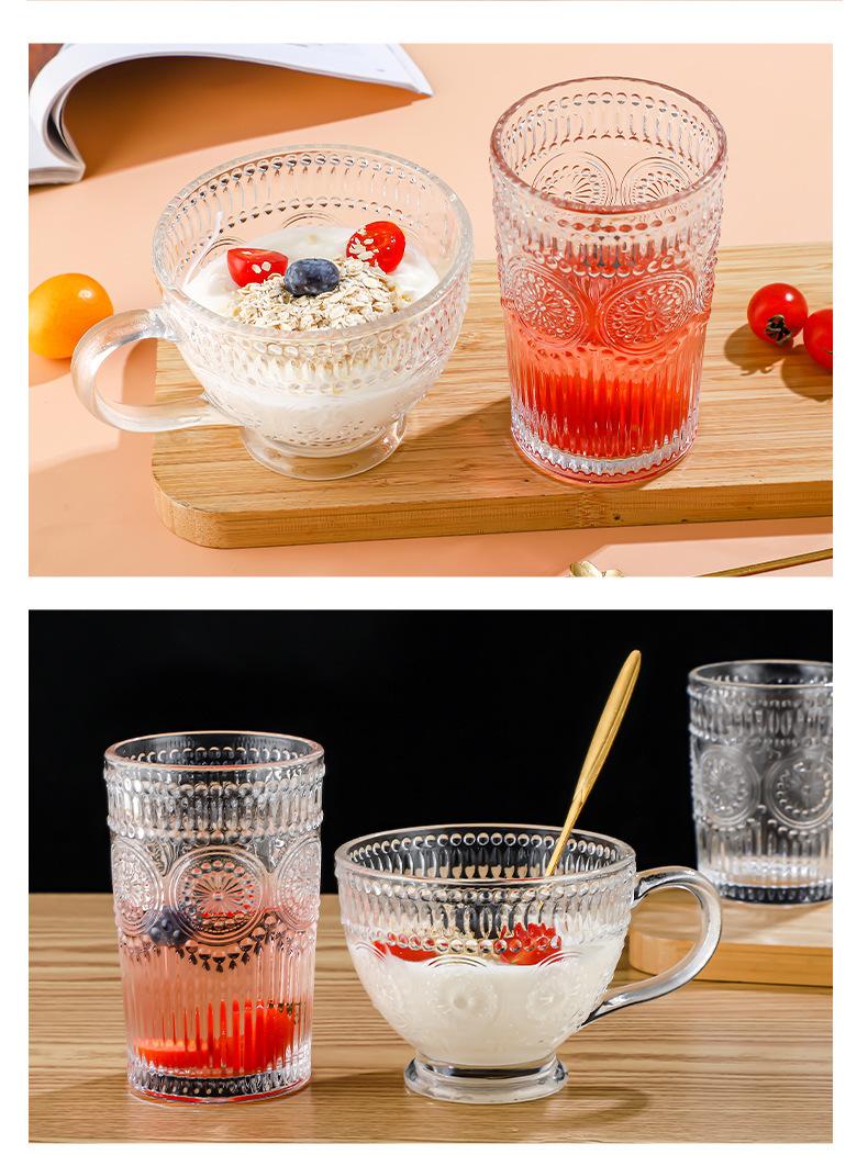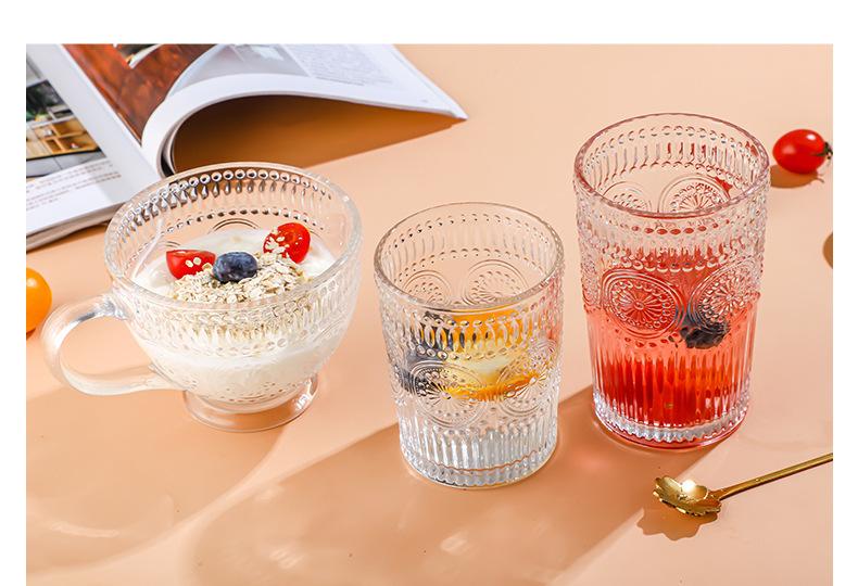 Taza de leche de girasol de celebridades en línea, taza de agua, taza de café femenina de vidrio con relieve vintage, taza de bebida fría, taza de jugo para el hogar.
