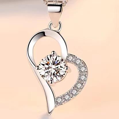 Oblique peach heart UV color copper plated platinum chain reinforcement, White zircon oblique peach heart copp...