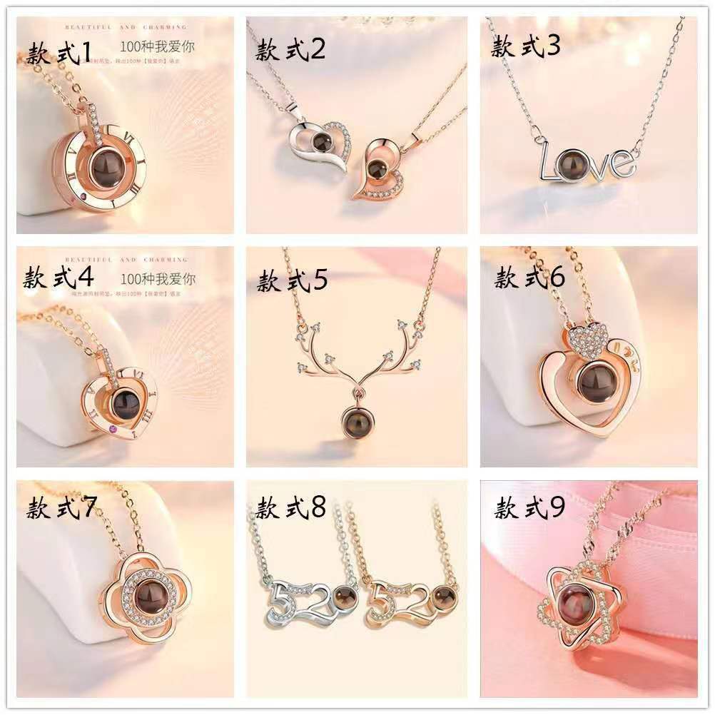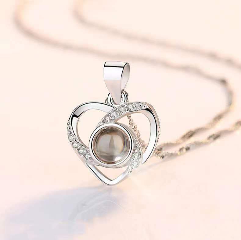 Collar con proyección de "Te amo" en 100 idiomas, fresco, dulce, elegante, sencillo, con cadena de clavícula y personalización de imagen.