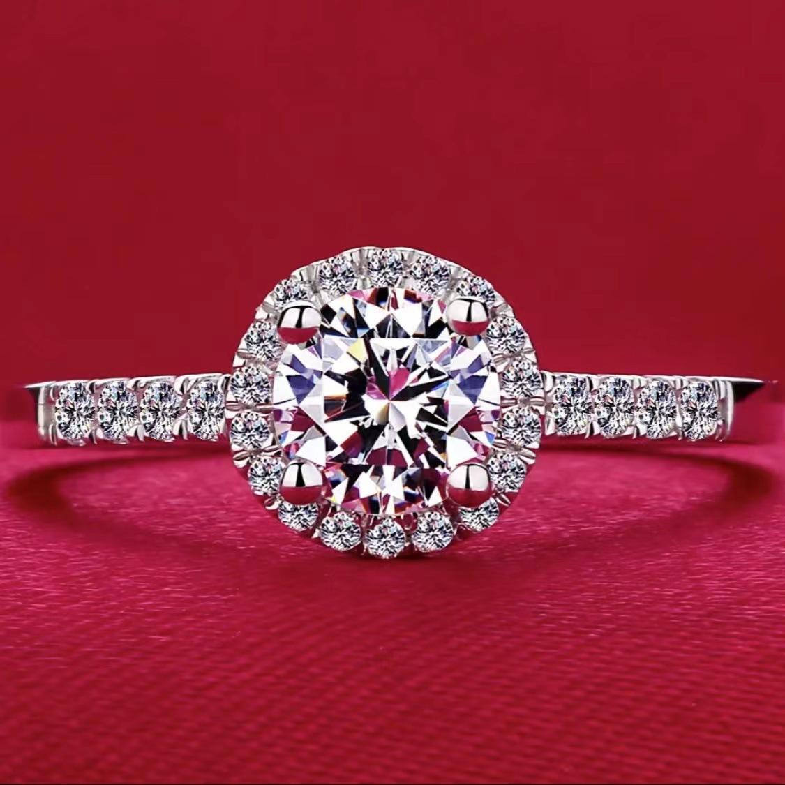 Anillo de moissanita redondo para mujer, versión coreana, anillo de plata de seis garras, venta al por mayor.