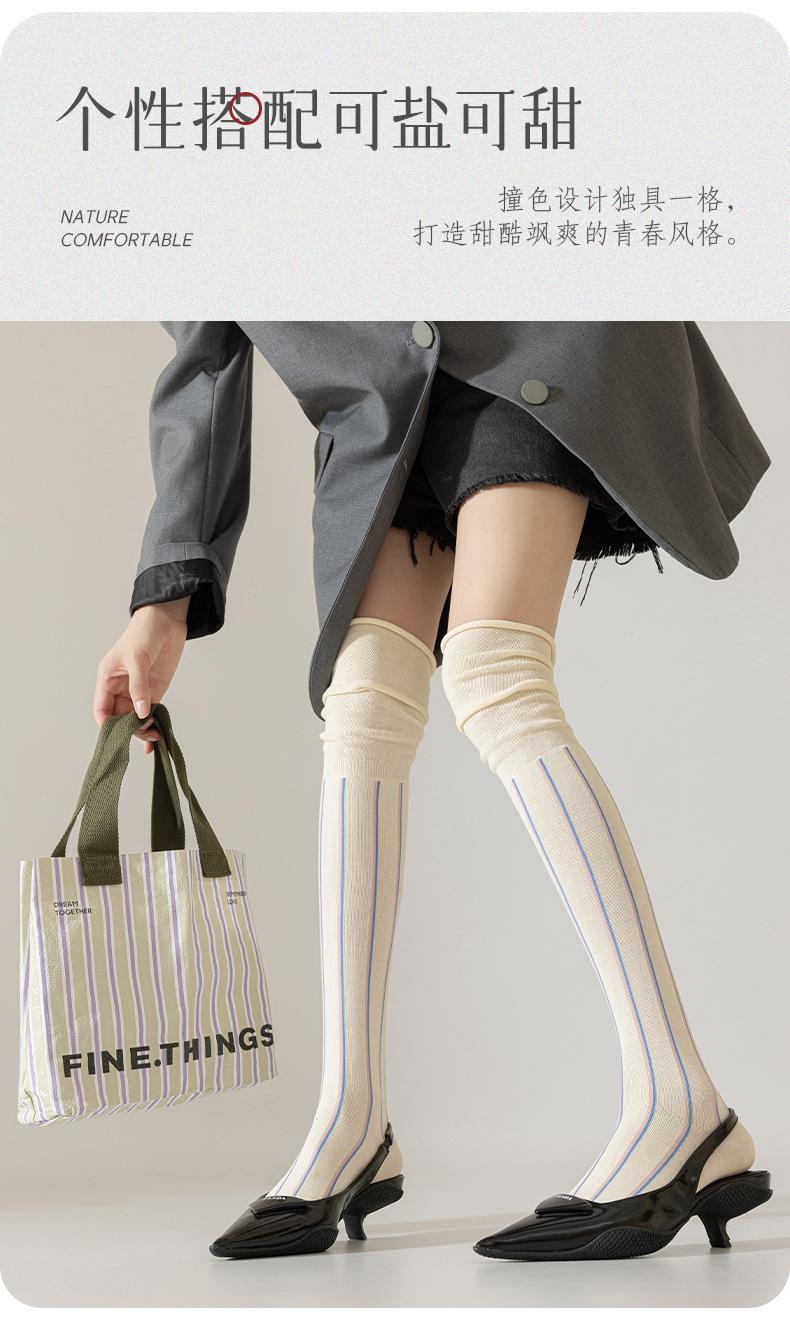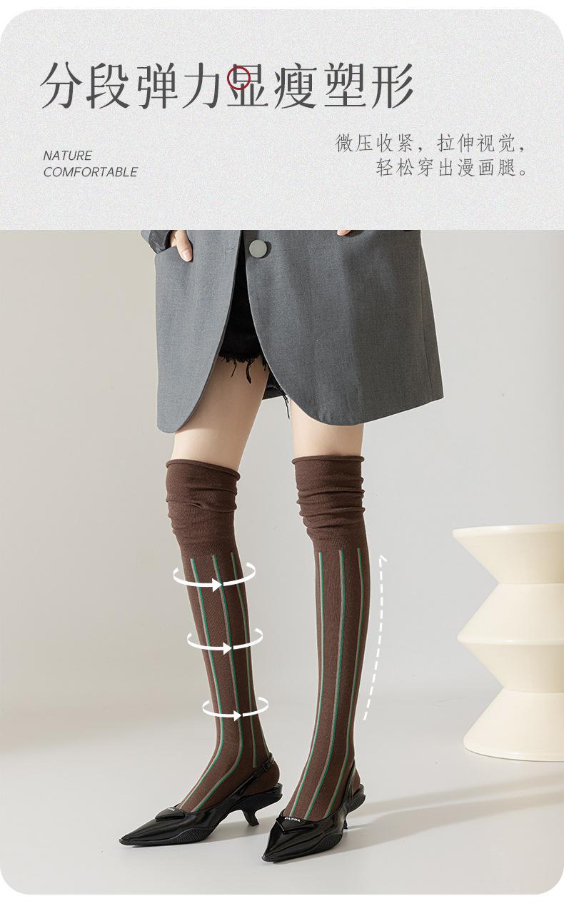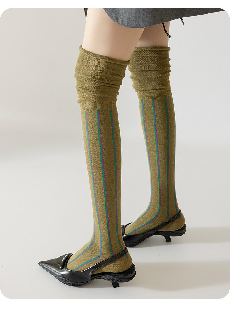 Calcetines largos sueltos hasta la rodilla para mujer de primavera y otoño, color sólido, patrón vertical, calcetines largos hasta la pierna, adelgazantes, para uso exterior, calcetines largos de punto a rayas hasta la rodilla