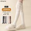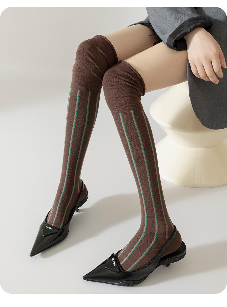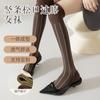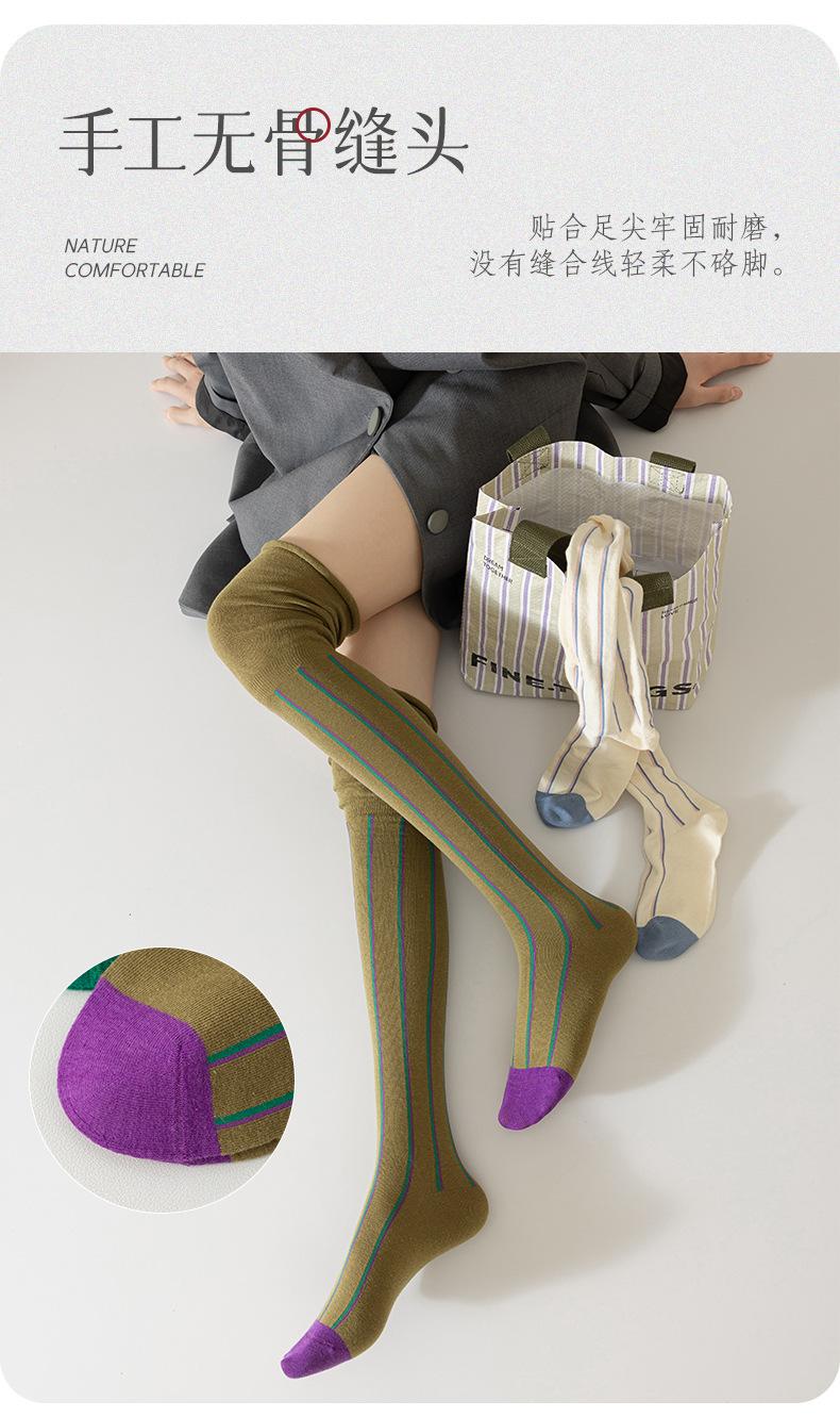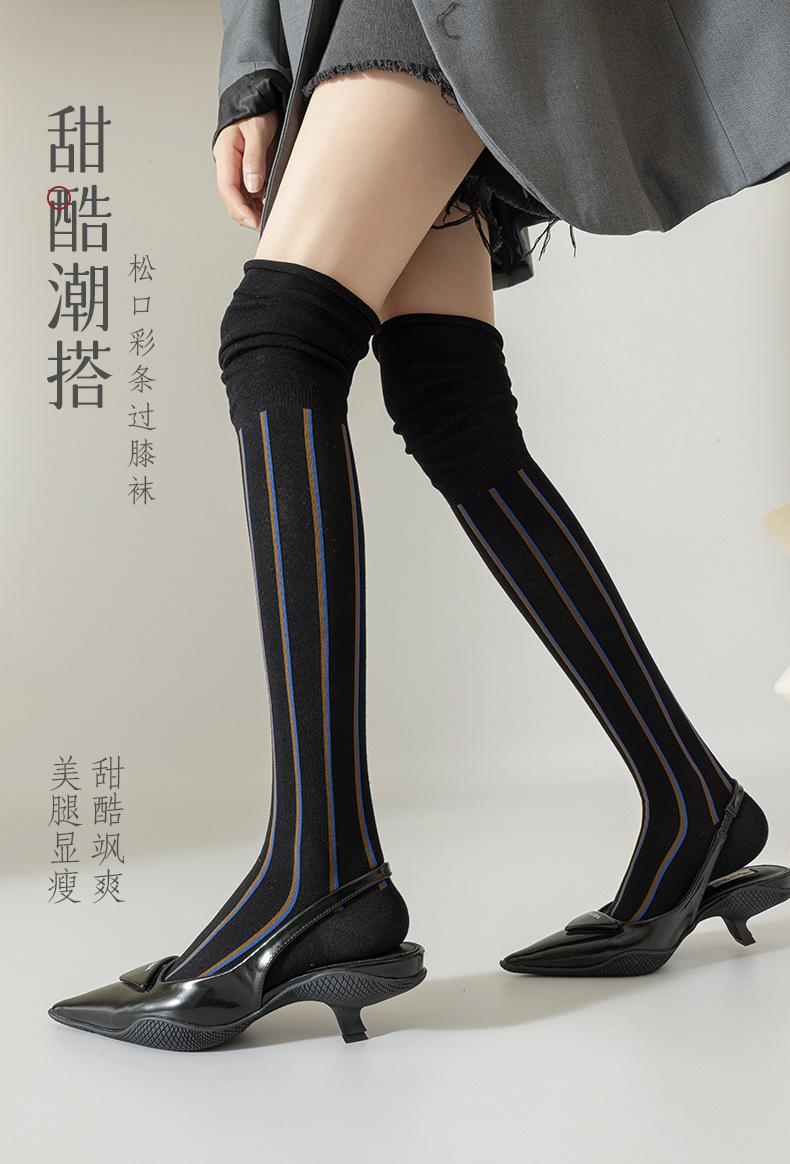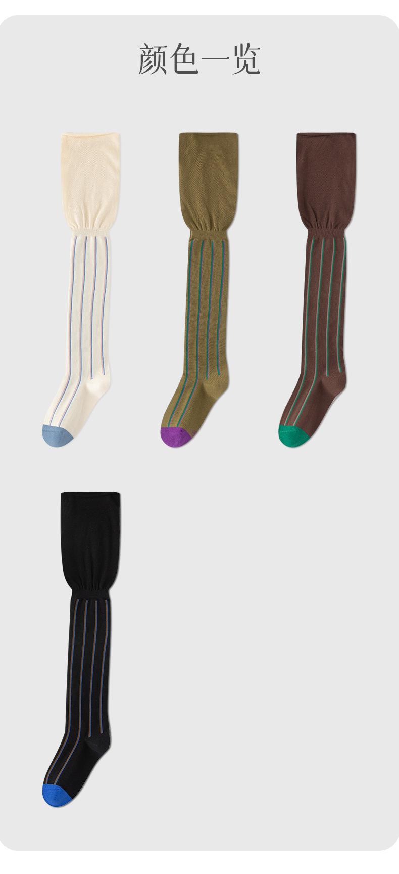 Calcetines largos sueltos hasta la rodilla para mujer de primavera y otoño, color sólido, patrón vertical, calcetines largos hasta la pierna, adelgazantes, para uso exterior, calcetines largos de punto a rayas hasta la rodilla