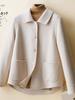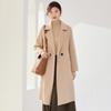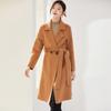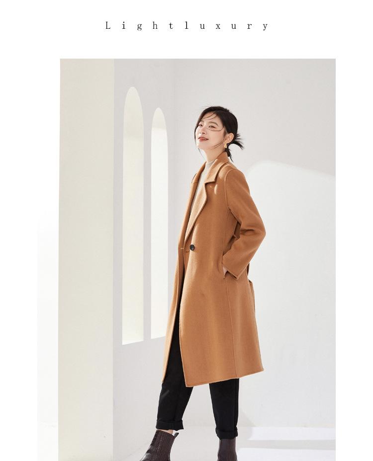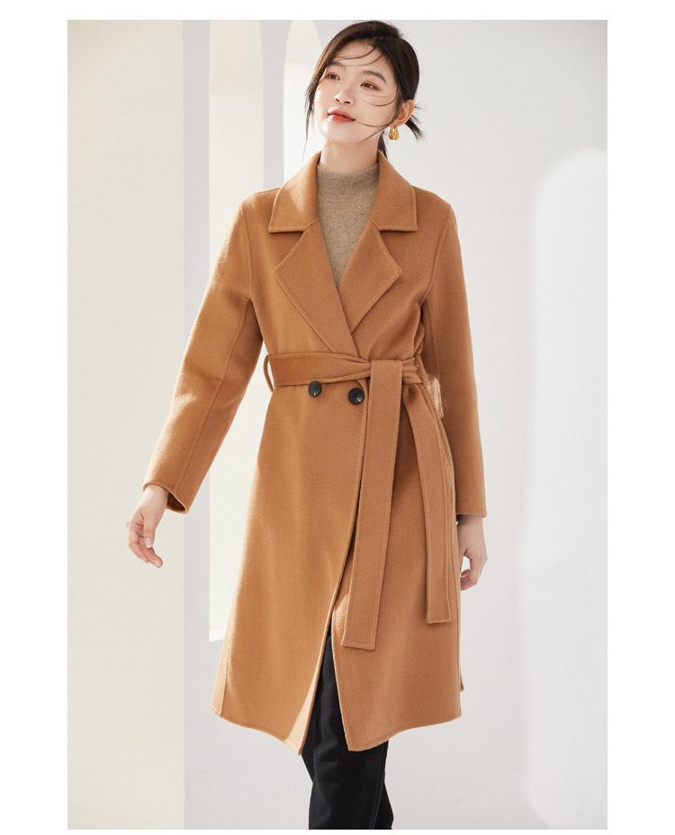 Otoño e Invierno Nuevo Abrigo de Lana de Doble Vista Simple Color Puro Abrigo para Mujer Cinturón Extendido Decorativo para la Cintura