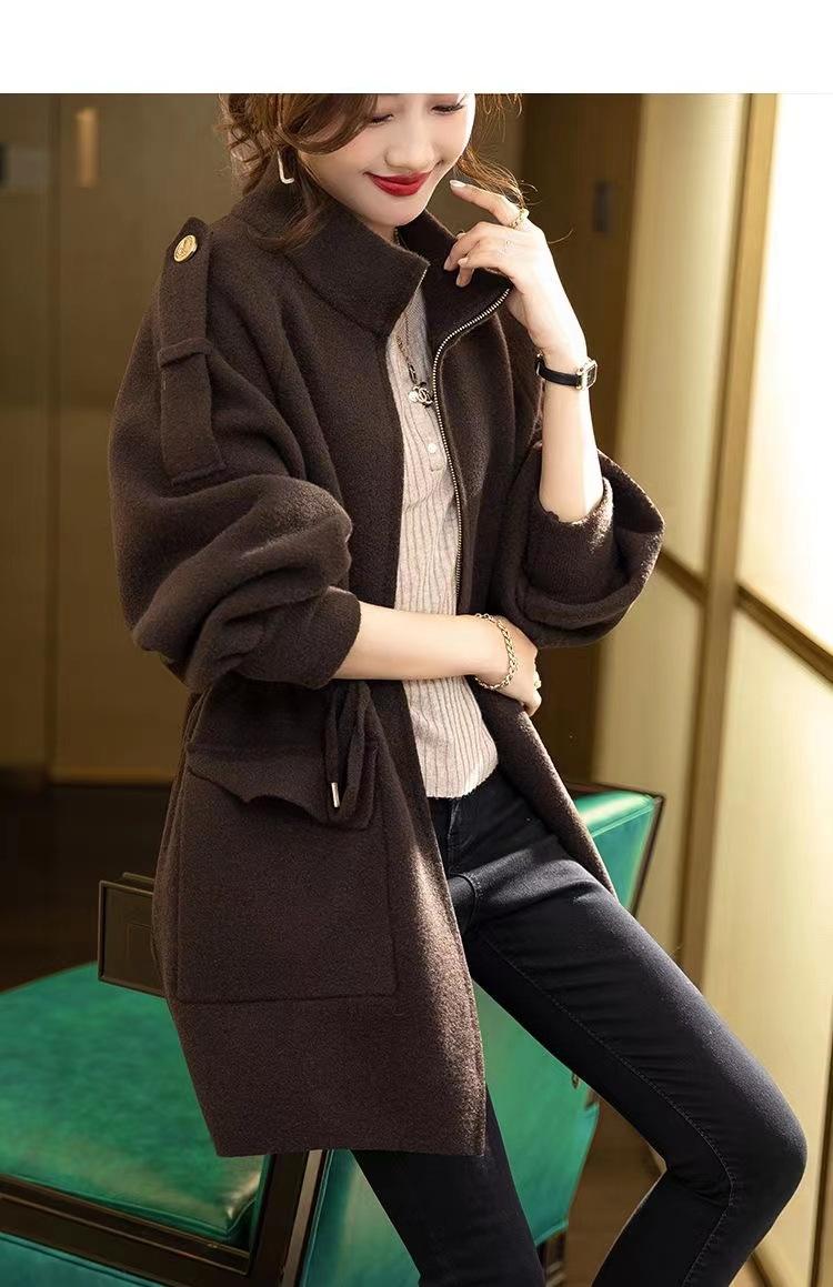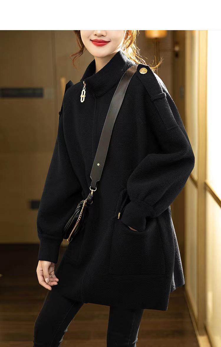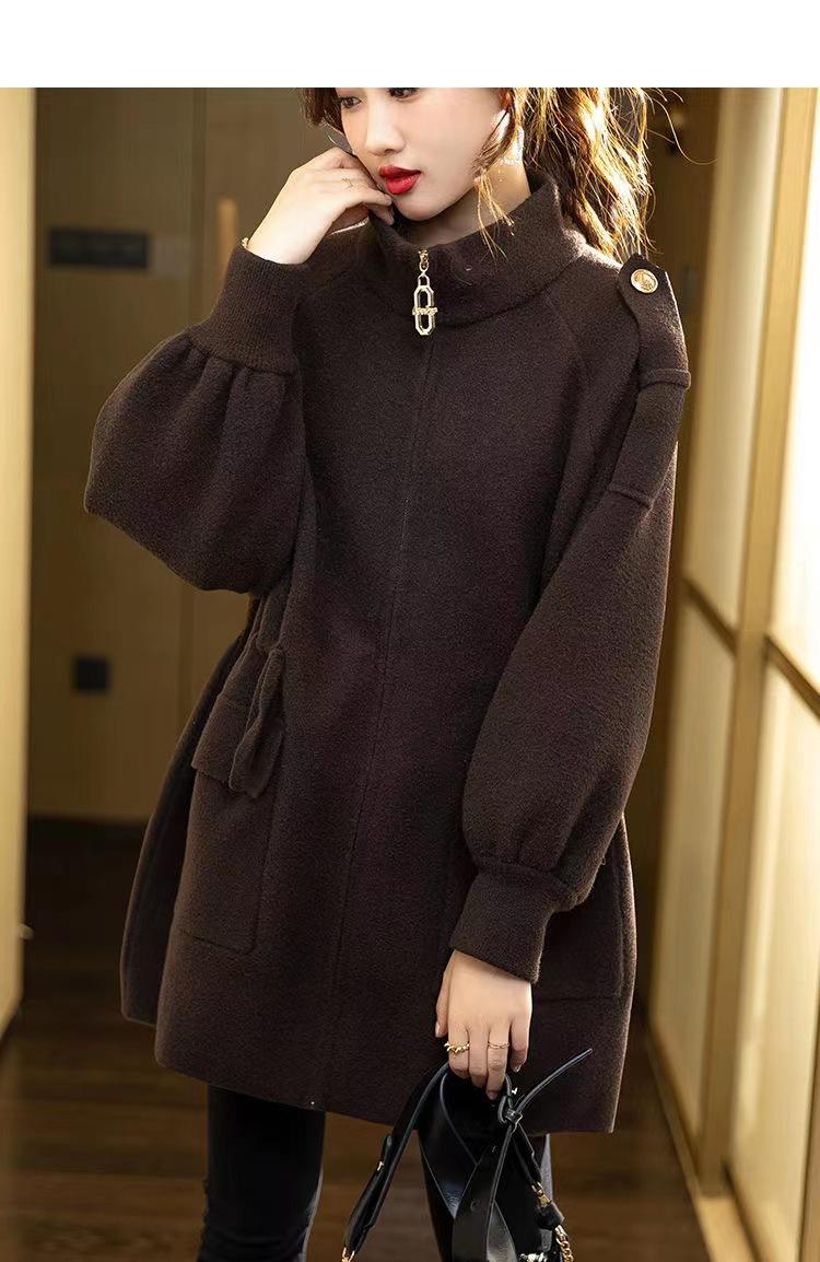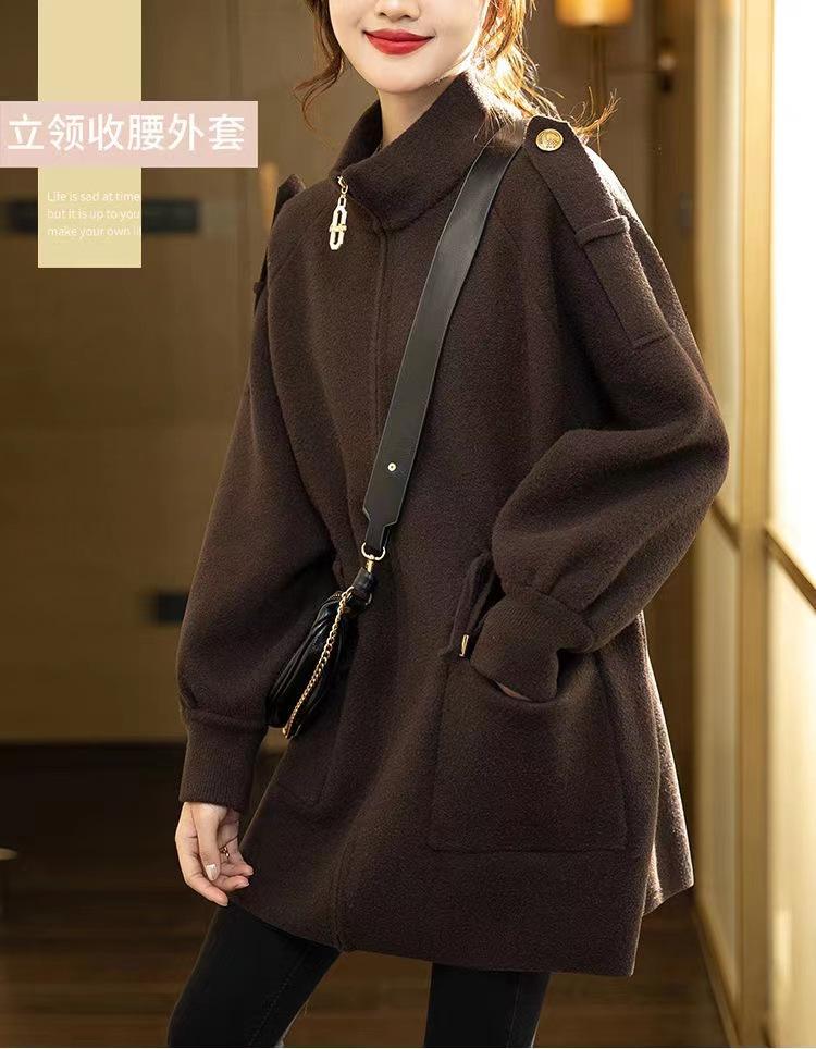 2023 Estación Europea talla grande Nuevo Lana Moda Cuello Alto Cintura Chaqueta Abrigo Suelto Hermana Gordita Ropa de Invierno para Mujer