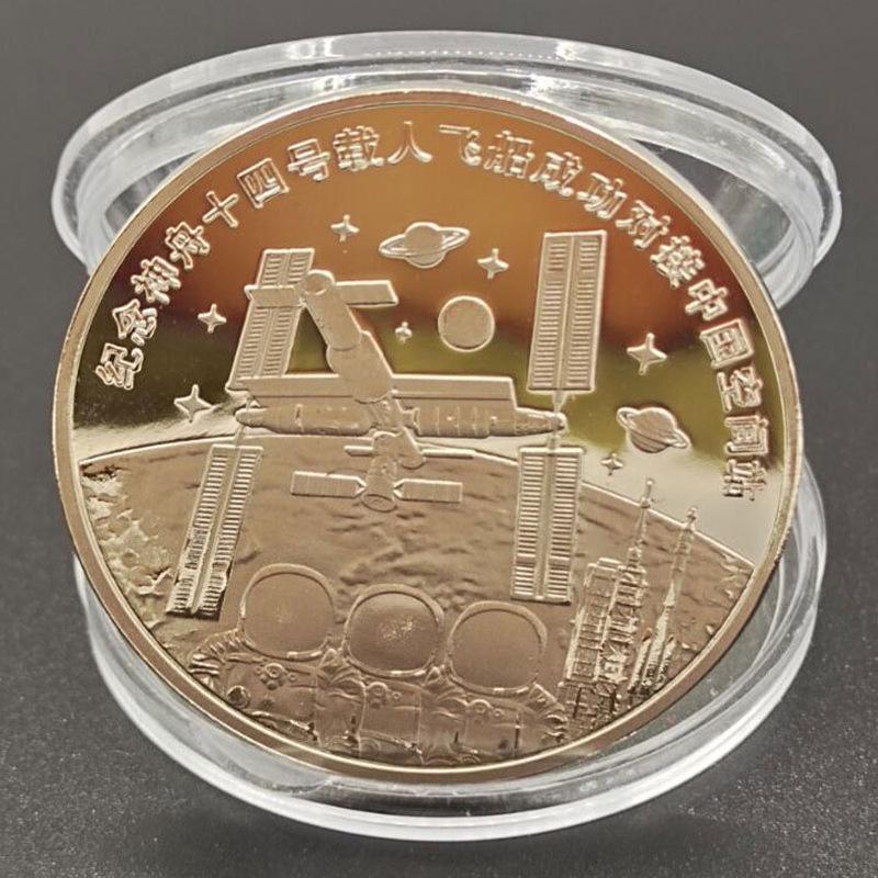 Shenzhou Conmemorativo No. 14 medalla conmemorativa tripulada chapada en oro chapada en plata artesanías de metal repujado colección de monedas Lucky Sky gratis