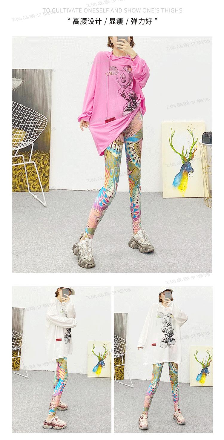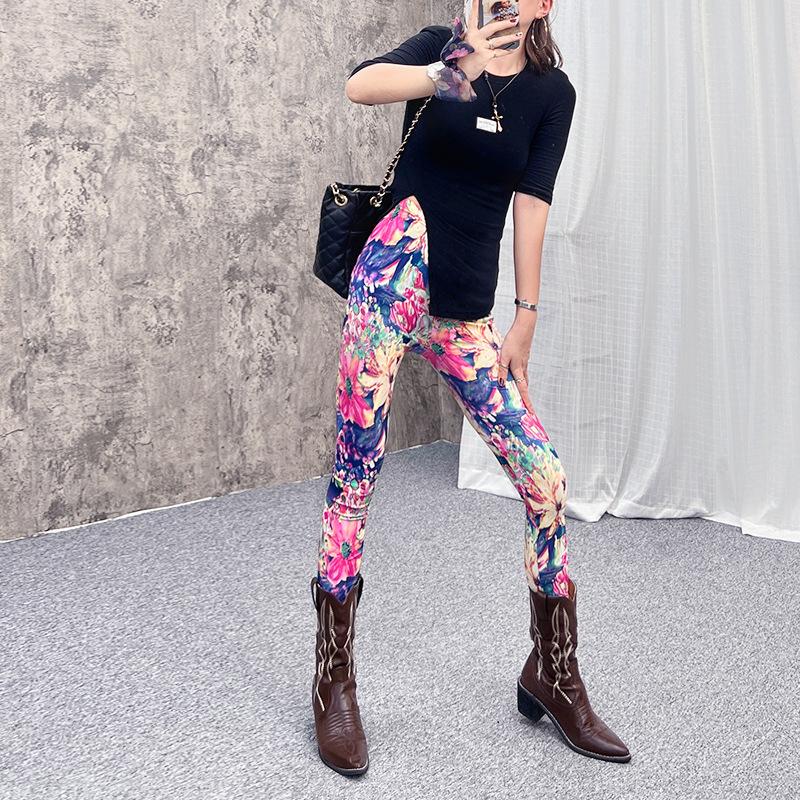 Leggings de cintura alta estampados para mujer, ropa exterior, mallas, pantalones de yoga de alta elasticidad europeos y americanos, pantalones largos tipo lápiz, entrega de una pieza