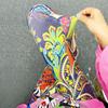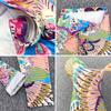 Bohemian pink peacock, Bohemian colorful phoenix tail, Abstract flowing blue and pink colors, Retro colorful c...
