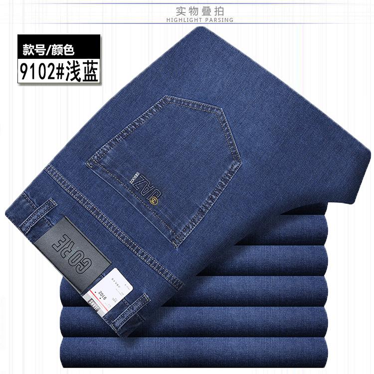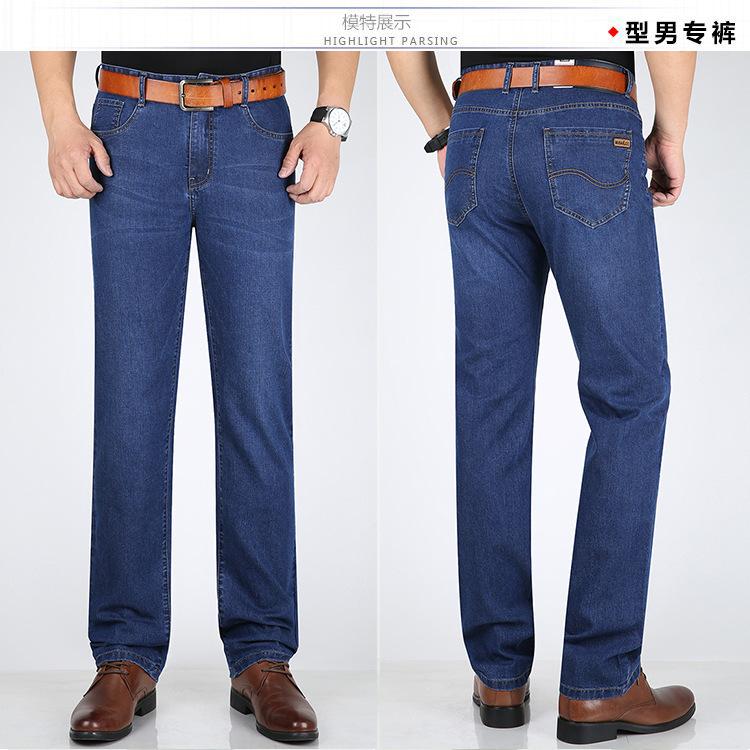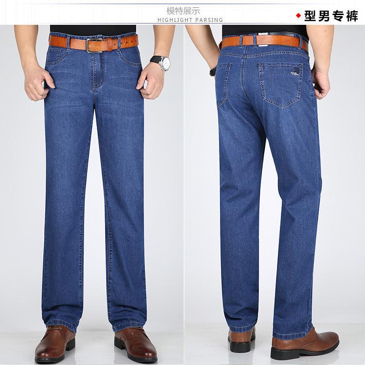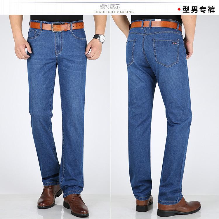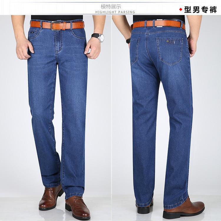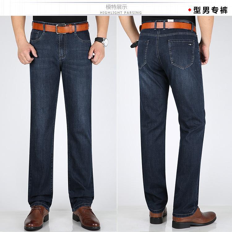 Pantalones vaqueros largos rectos de seda de hielo elásticos para hombre, de mediana edad, informales, de negocios, de verano, finos y alegres, de estilo canguro