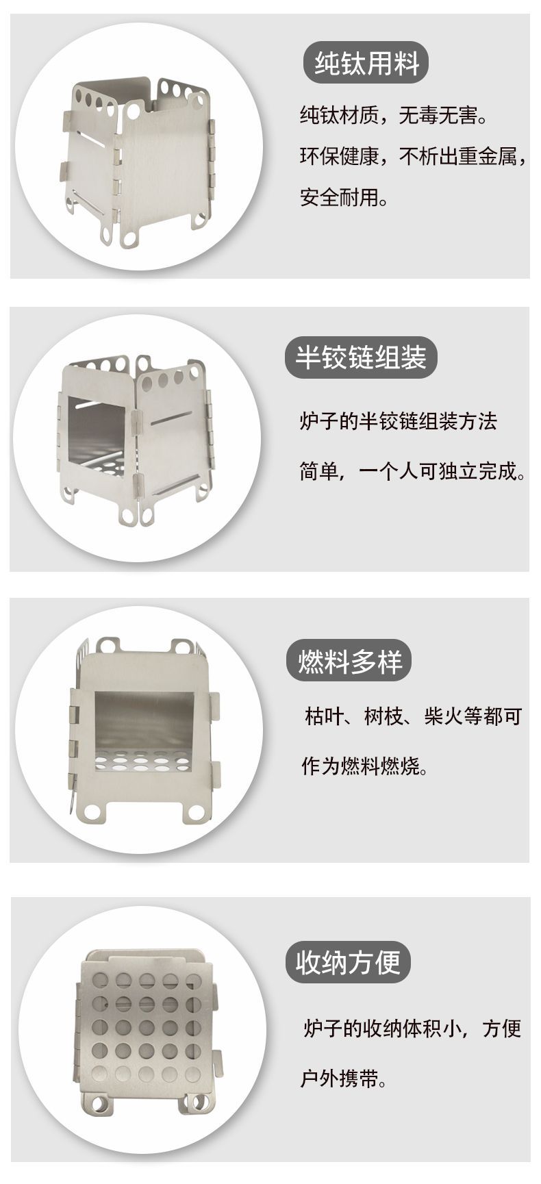 Estufa de leña de titanio puro con media bisagra para exteriores, camping, picnic, estufa de tarjetas portátil para exteriores, estufa de camping, estufa de té