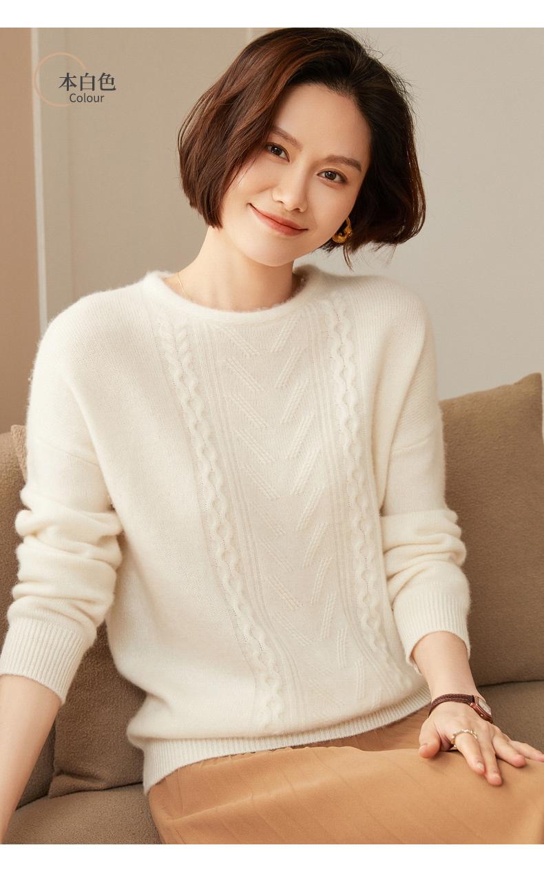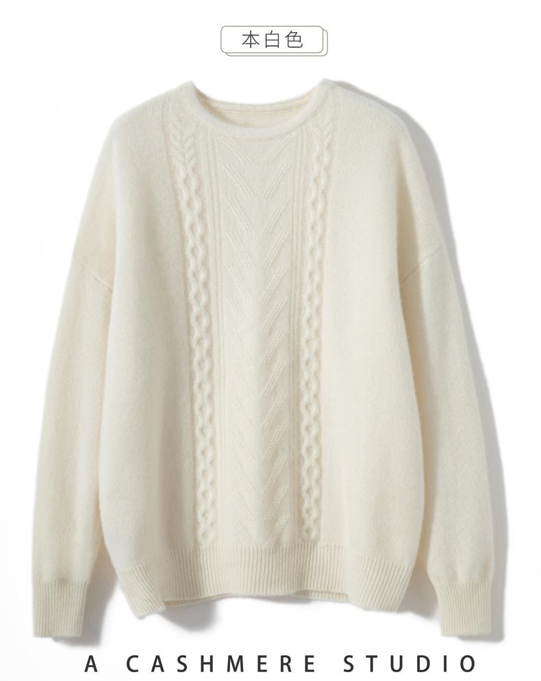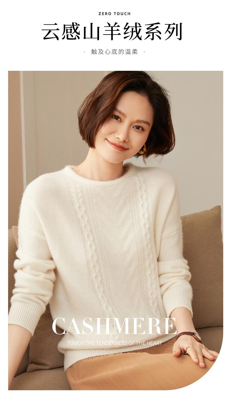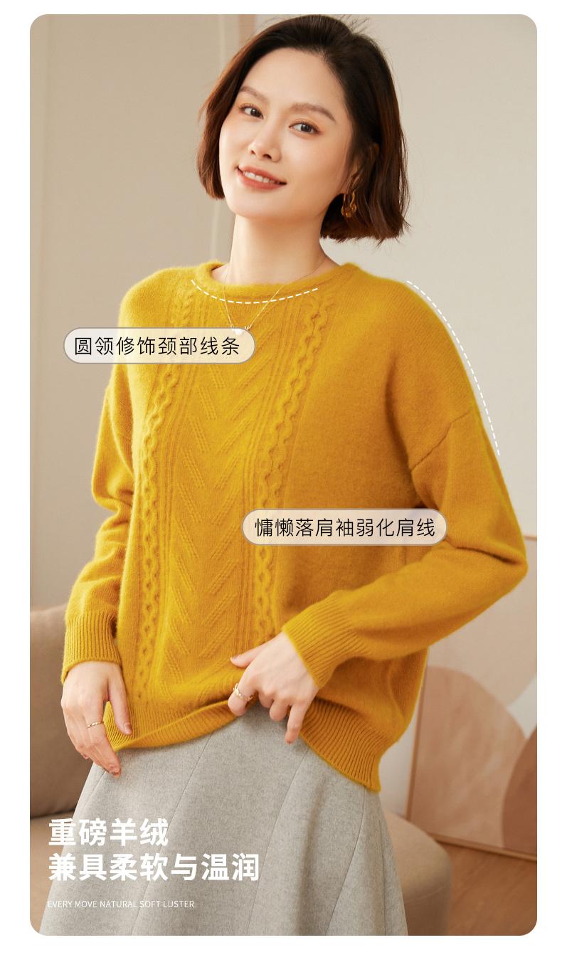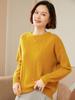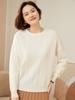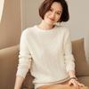 Suéter de cachemira 100% neto de hombro caído suelto para otoño e invierno, jersey de fondo de manga larga para mujer, color sólido, adelgazante, cuello redondo