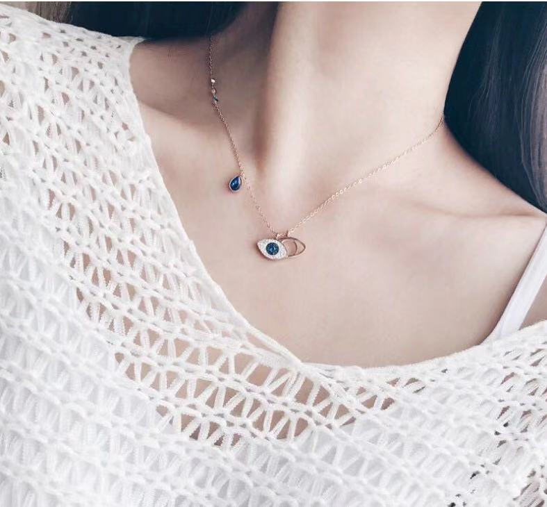 Colgante de Acero de Titanio Ojo del Diablo Oro Rosa Cristal Cadena Clavicular Collar de Acero de Titanio Antidesvanecimiento Venta al por Mayor del Fabricante