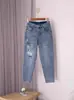 Jeans Harem de Cintura Alta para Mujer 2025 Verano Delgados Negro Gris Elásticos Ajustados Más Fáciles de Combinar Pantalones de Mujer Papá