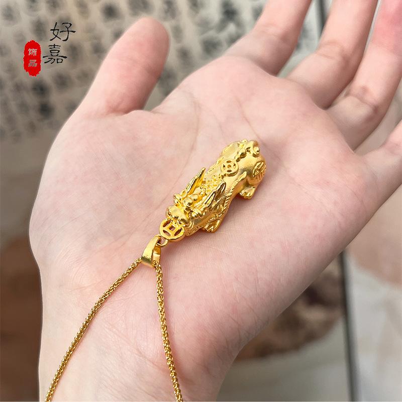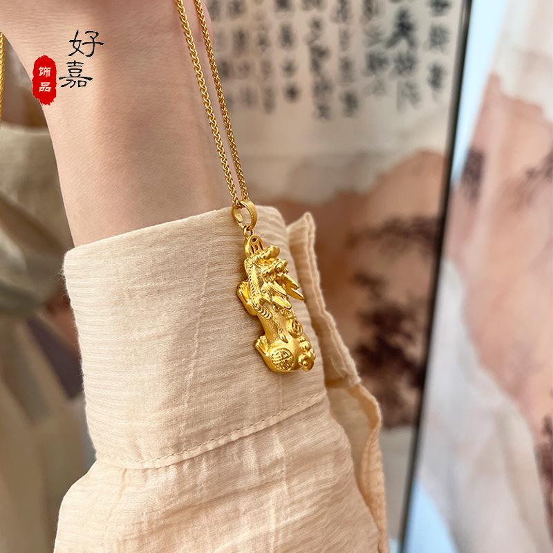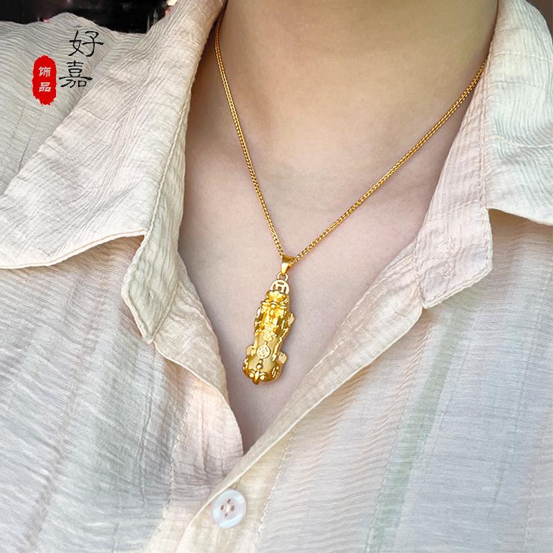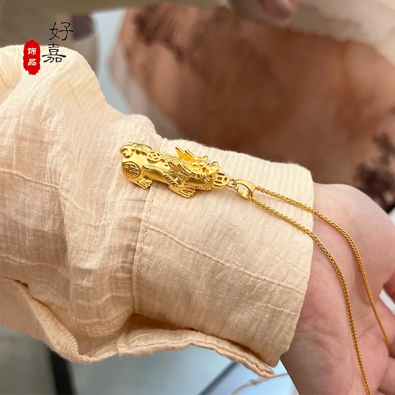 Collar de moneda de oro macizo, aleación, colgante que no se decolora, joyería de estilo chino, cadena de suéter, joyería de metal para mujer