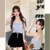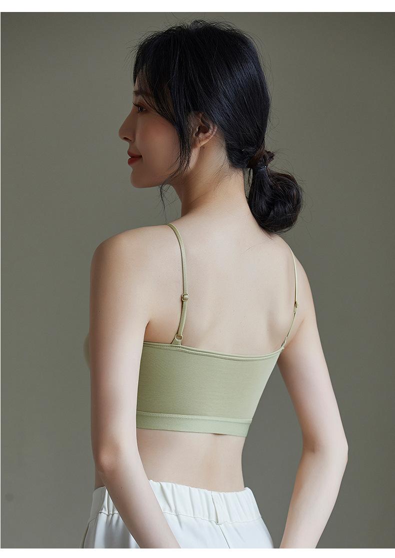 Camisola pequeña antiexposición con tirantes finos y cuello descubierto con almohadilla para el pecho, prenda exterior de verano para mujer